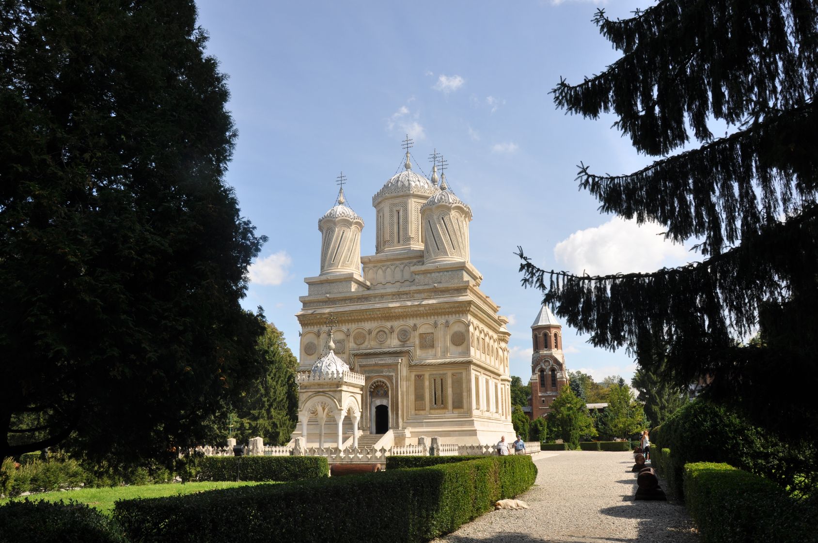 Biserica episcopală, cunoscută sub denumirea de Mănăstirea Curtea- de- Argeș, o ctitorie a lui Neagoe Basarab (1512-1517), este caracterizată printr-un naos larg și turla înaltă deasupra naosului. Aici se găsesc mormintele regilor Carol I și Ferdinand I (împreună cu soțiile lor), iar in anul 2003 a fost repatriat si Regele Carol al doilea impreuna cu Elena Lupescu, aceasta fiind inhumata in cimitirul manastirii.