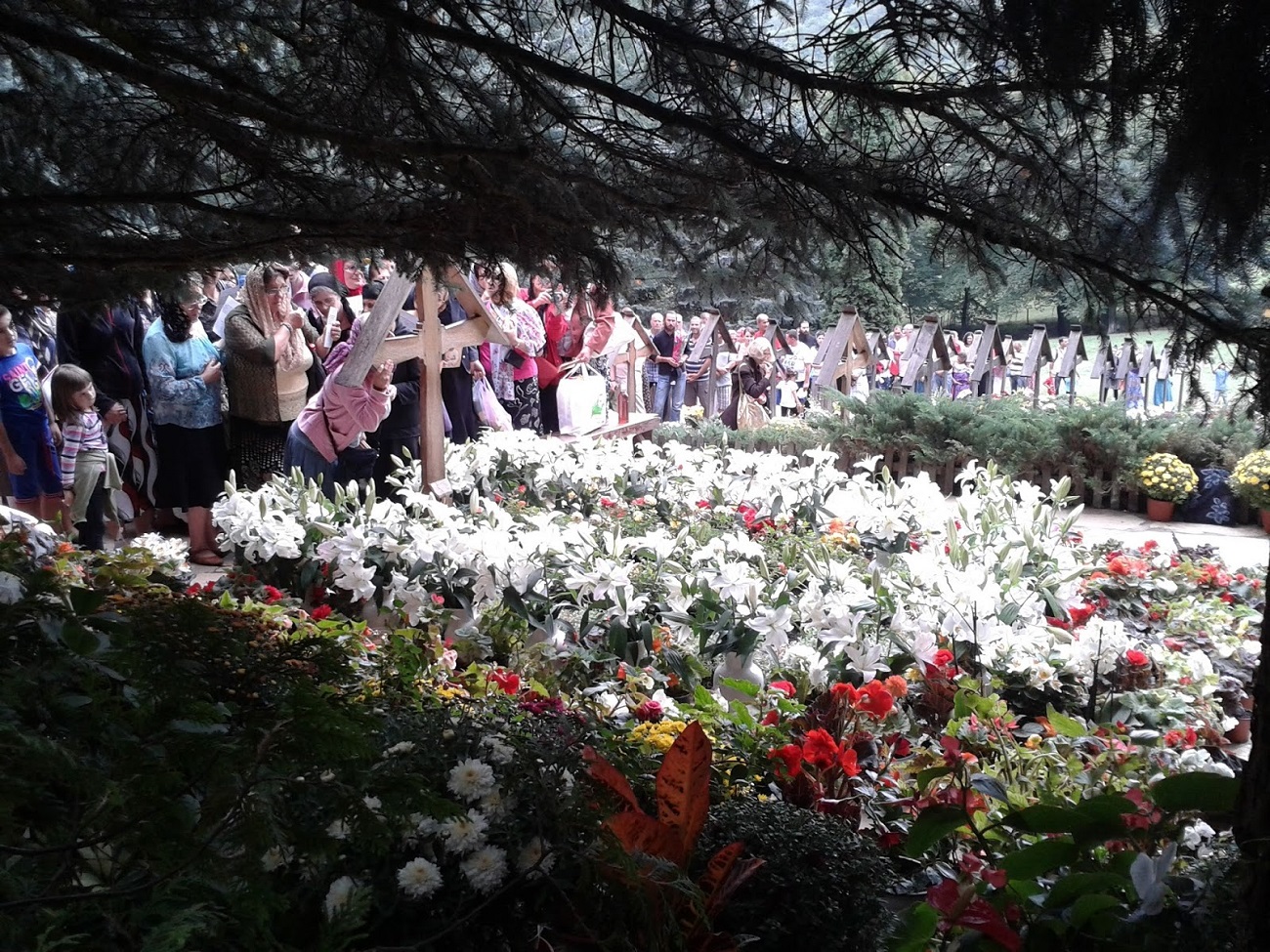 Mormântul Părintelui Arsenie Boca de la Prislop e veşnic plin de flori. Se spune că aici florile nu se ofilesc niciodată. Nu există persoană care să treacă pragul mănăstirii şi să nu poposească preţ de câteva minute la mormântul Părintelui.