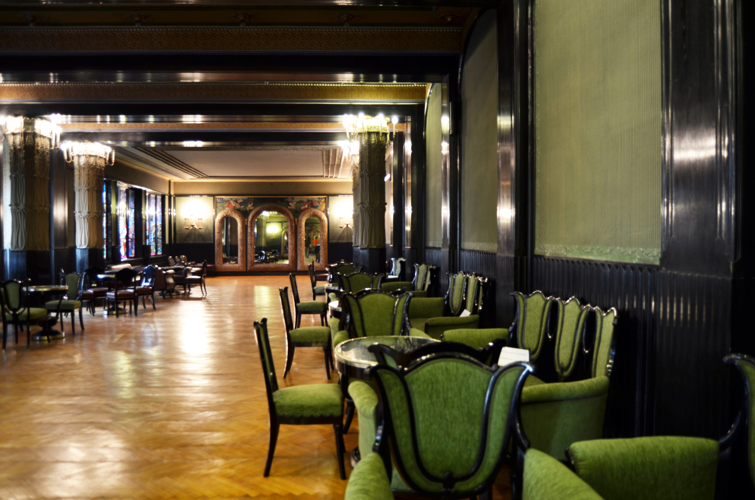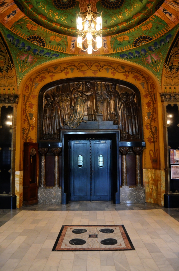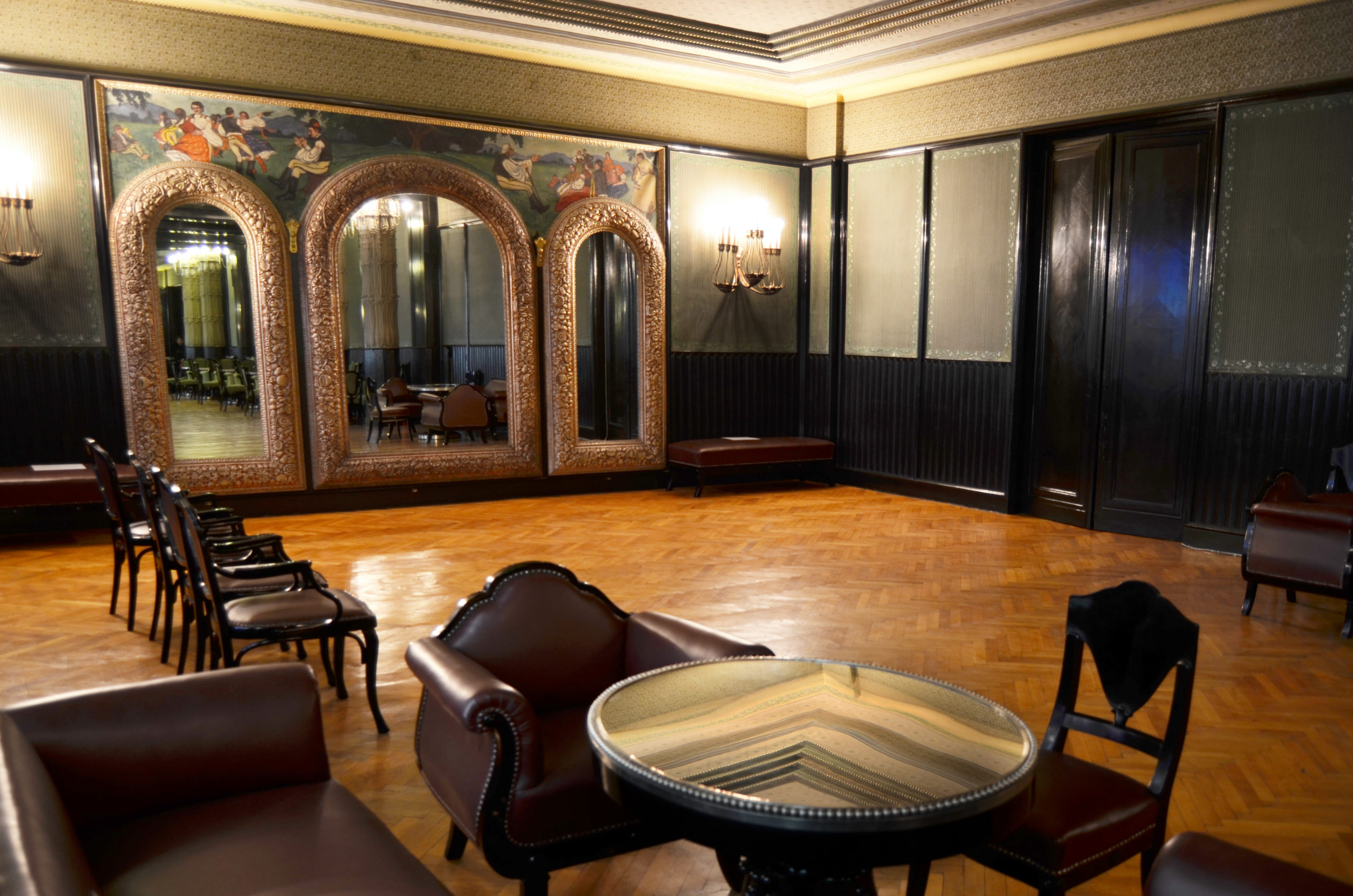 Odată ajuns în holul lung de 45 de metri, vei putea admira cele opt fresce cu teme mitologice realizate de artiștii aşa-numitei Școli de la Gödöllő, basoreliefurile din bronz reprezentând nuduri feminine și scena încoronării lui Franz Jozsef precum și oglinzile venețiene care-i închid extremitățile.