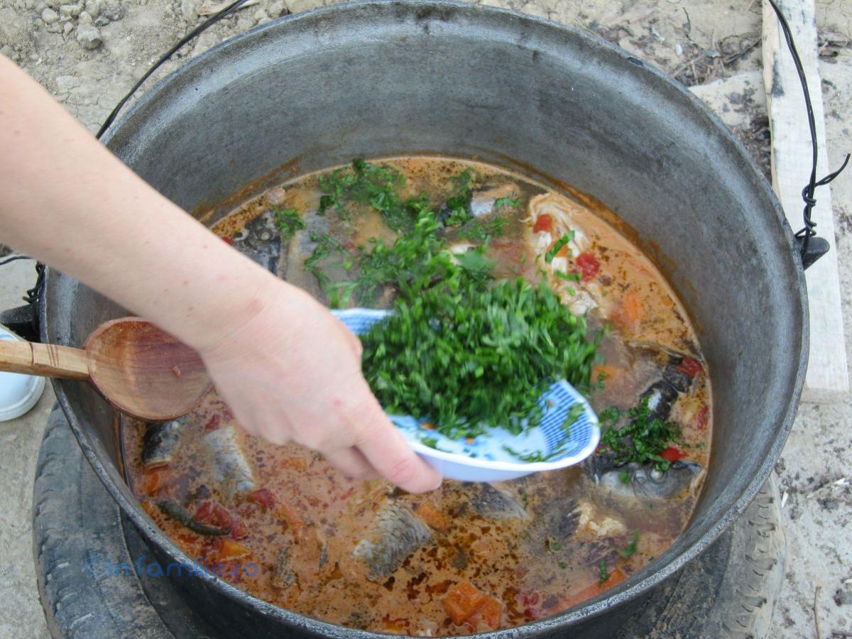 Borşul de peşte aburind, lângă mămăliguţa fierbinte şi saramura de crap.