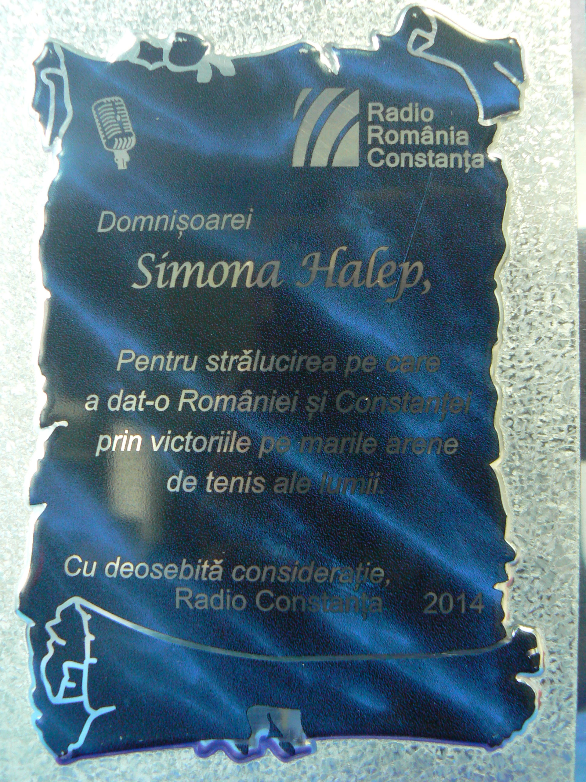 Jucătoarea de tenis Simona Halep, locul al III-lea în ierarhia WTA a primit o plachetă de merit din partea Radio Constanţa în semn de recunoştinţă faţă de performanţele extraordinare din 2014 pe plan mondial.