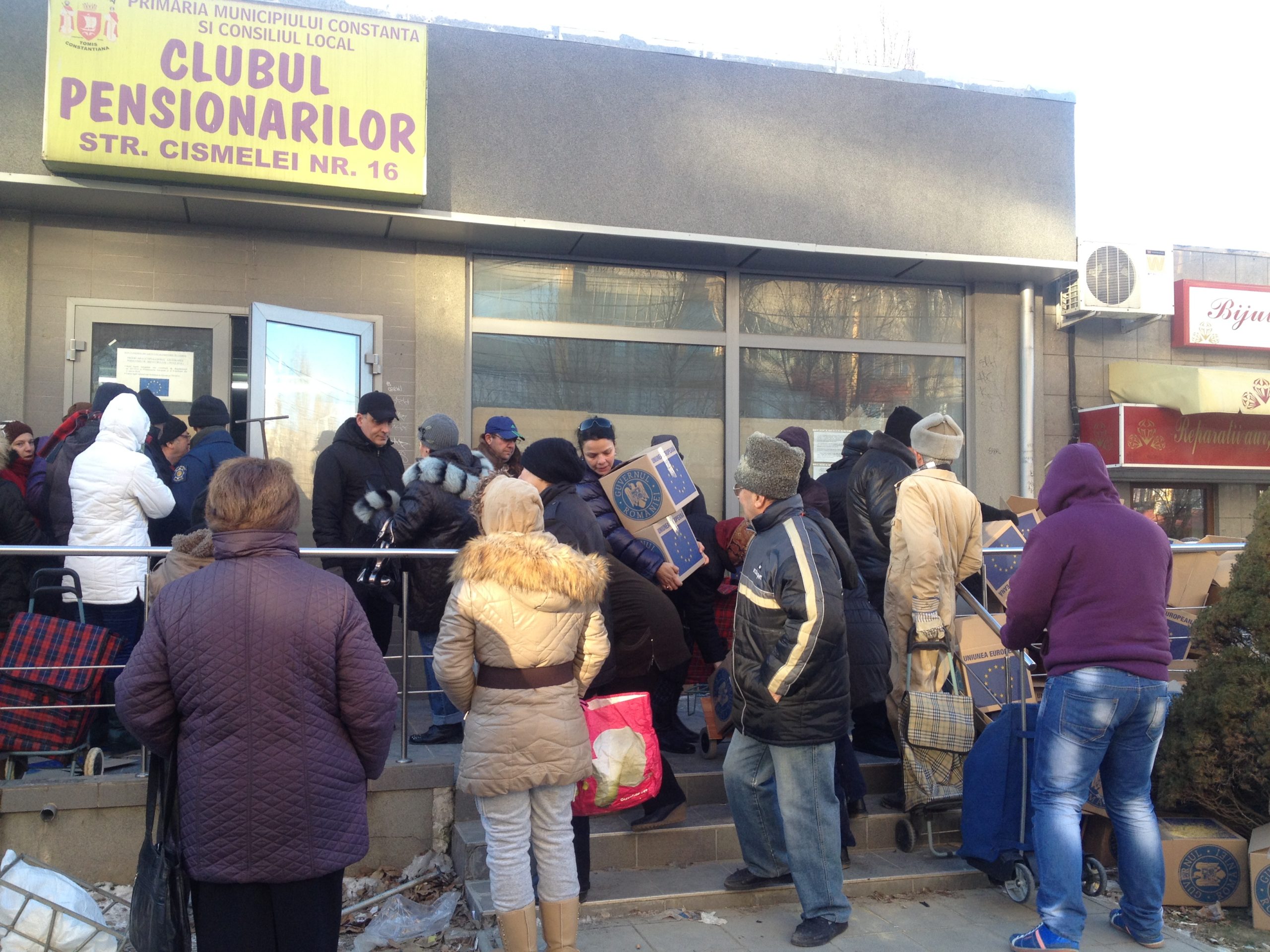 Îmbulzeală la centrele din Constanţa pentru acordarea ajutoarelor alimentare europene pentru persoanele defavorizate.
