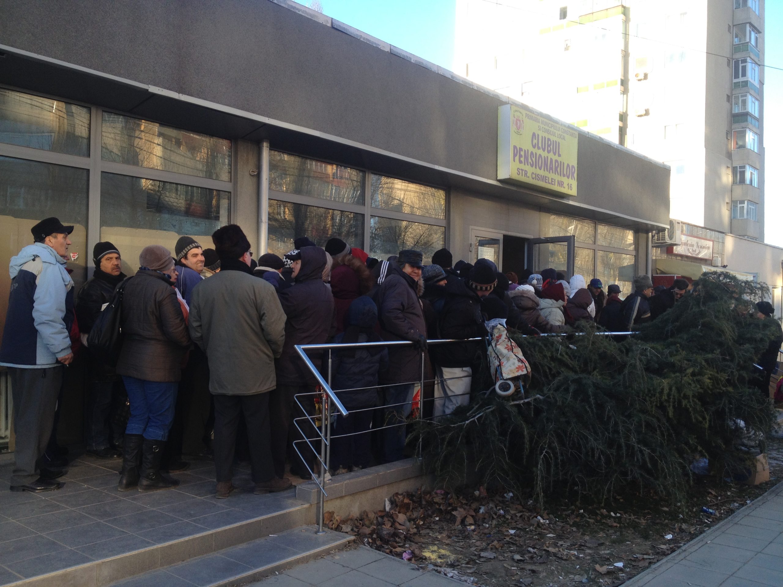 La ora 15.20, cu mai puţin de o oră înainte de închiderea centrului de pe strada Cişmelei, coada se întindea pe zeci de metri.