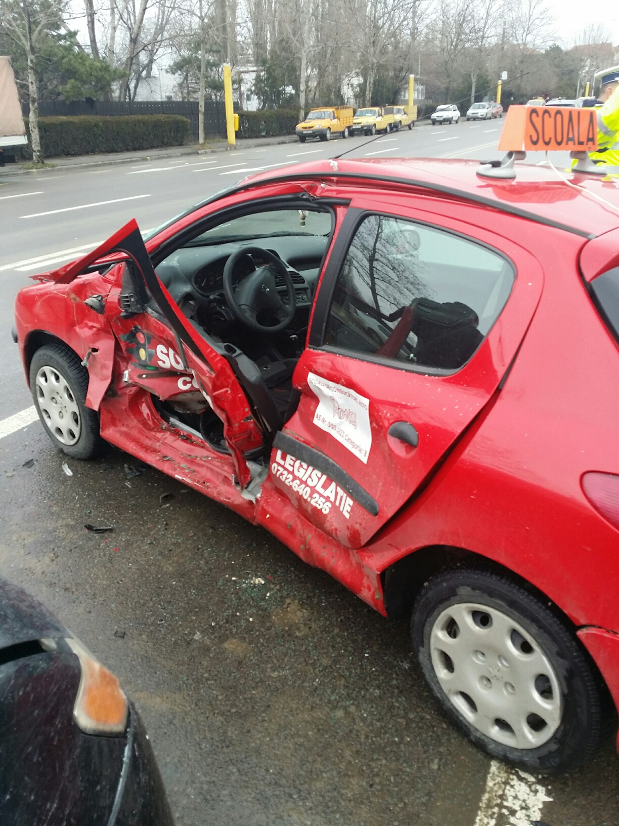 Potrivit primelor informaţii, se pare că două autoturisme, dintre care unul de școală, au intrat în coliziune, o persoană fiind rănită.