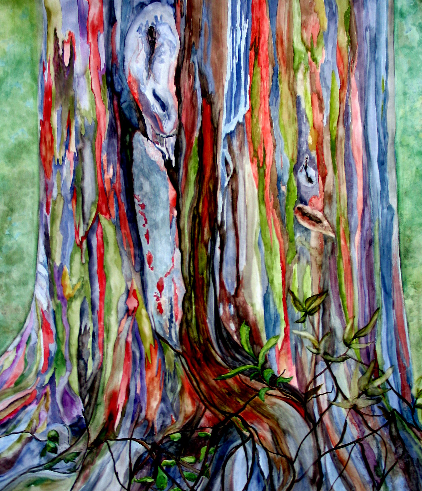 Trunchiul acestuia se colorează într-un mod uluitor, plecând din nuanţe de verde, albastru şi portocaliu, până la roşu, roz, lila sau fuxia.