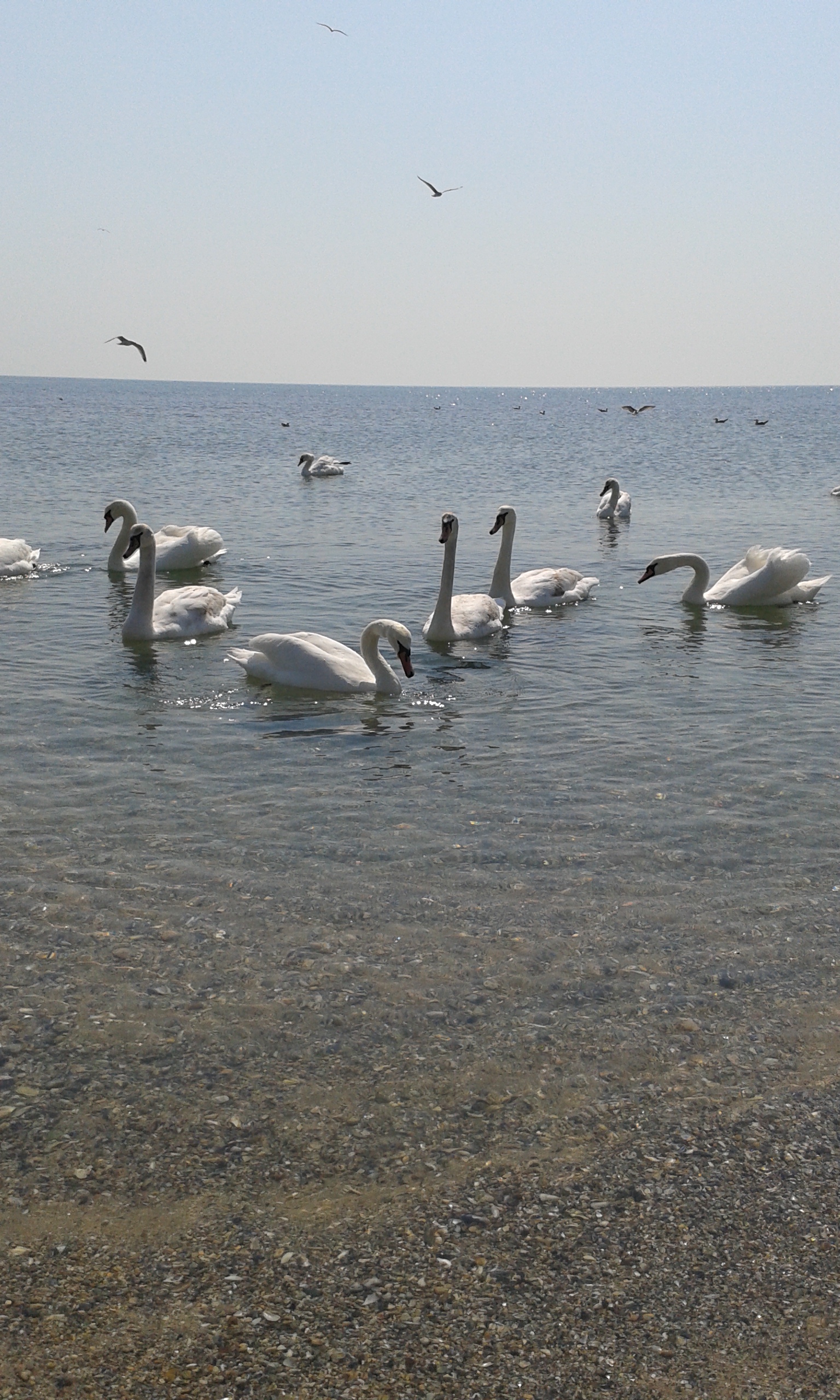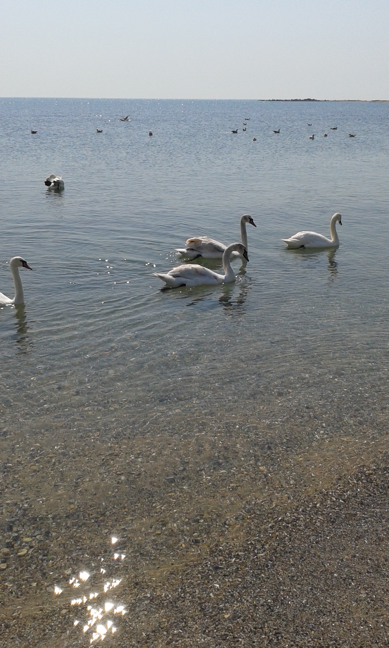 Zecile de lebede au fost o încântare pentru oamenii care s-au plimbat astăzi pe malul mării, în Eforie Sud.