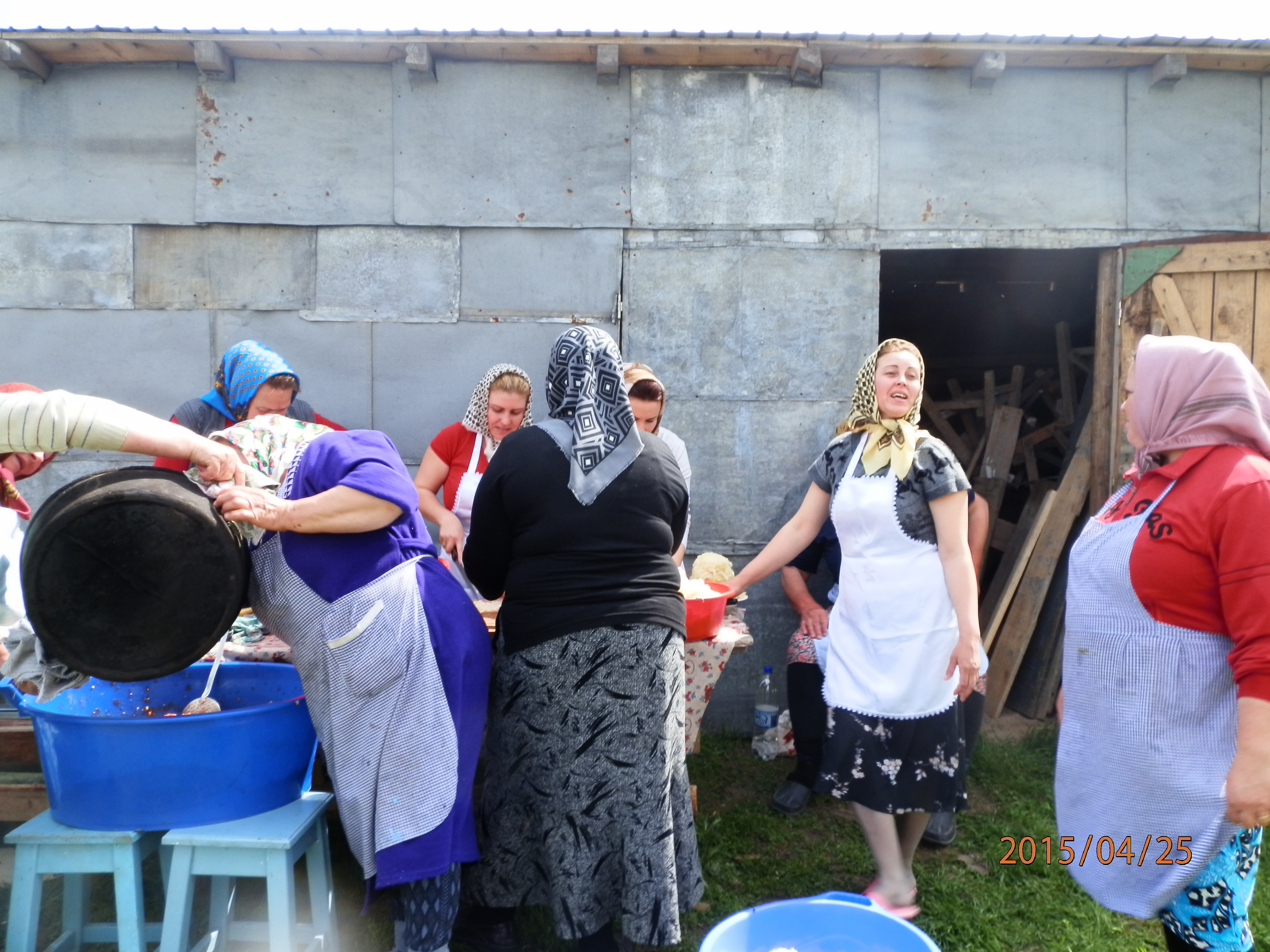 Biserica este înconjurată de multe încăperi în care gospodinele comunei pregăteau bucatele. La rușii-lipoveni, duminică 26 aprilie, se sărbătorește Ziua femeii , a mironosițelor. Peste 1000 de sarmale, prescură, supă de pasăre, ”tăvălite” și alte minunății culinare vor fi servite, doar după ce creștinii de rit vechi merg la slujba religioasă.