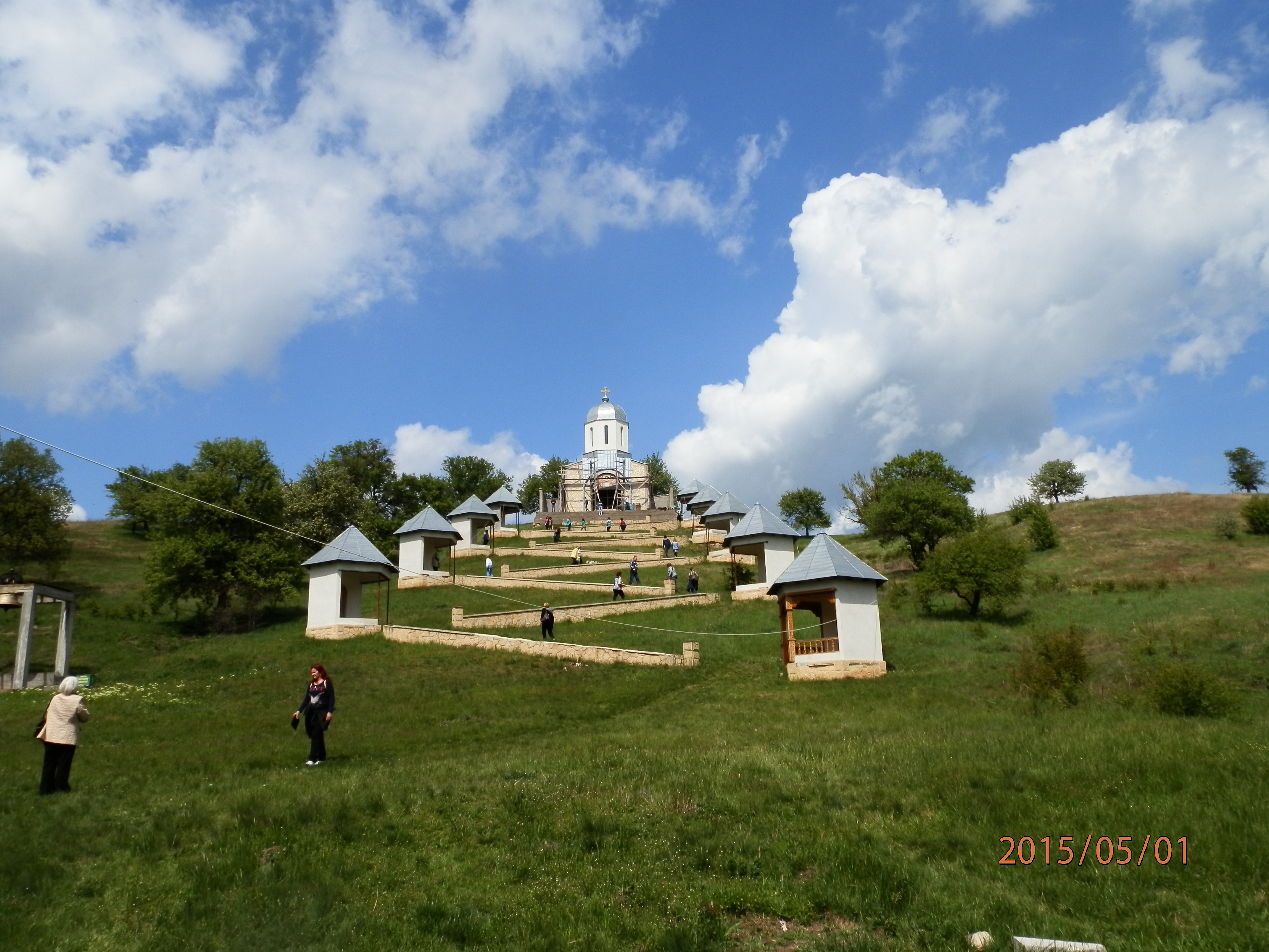 ”Dealul Golgotei” șerpuiește de la poale, unde o biserică mică te cucerește prin simplitate, spre vârf, unde ajungi la o capelă nefinalizată,oprindu-te de nouă ori .