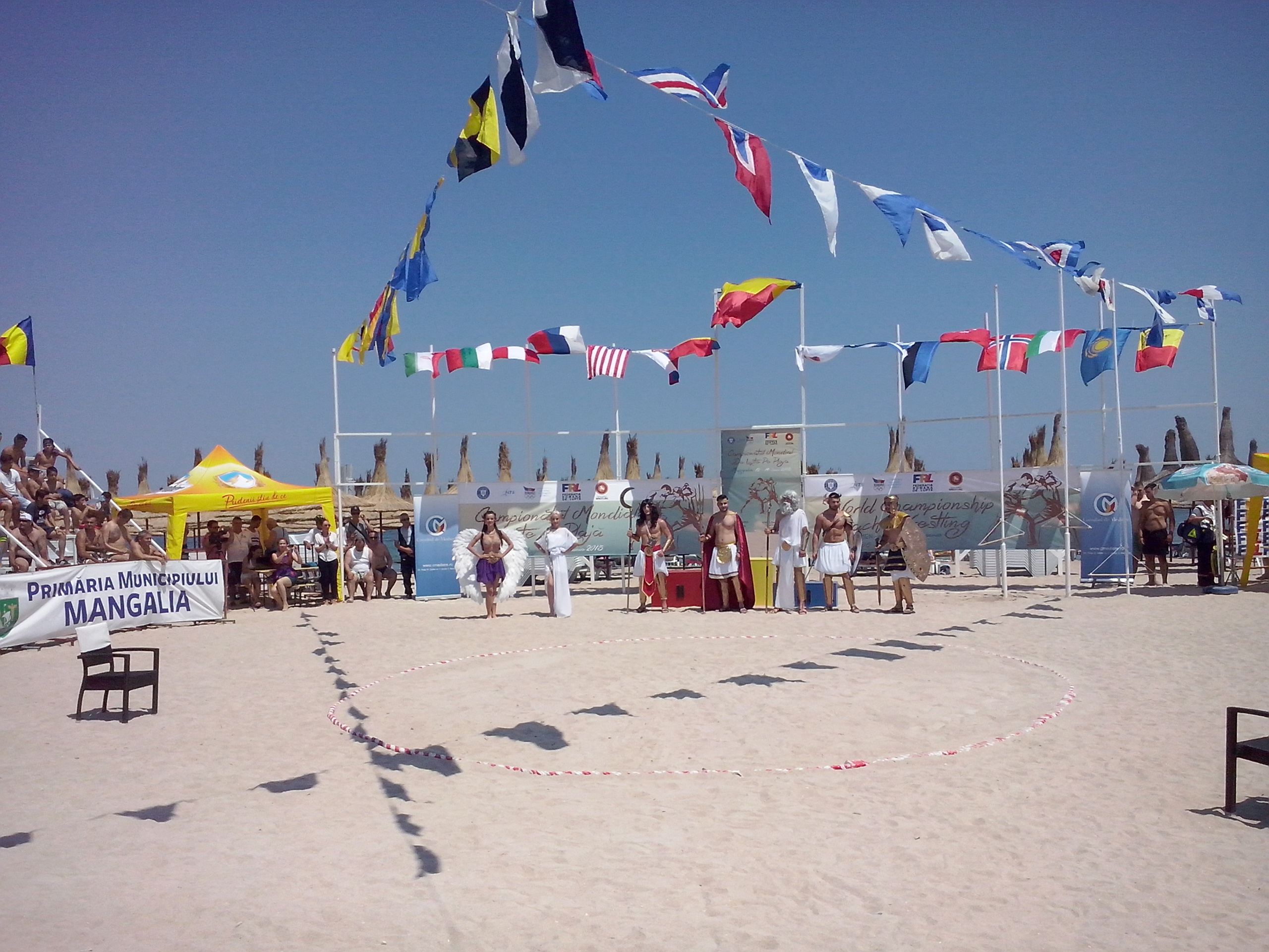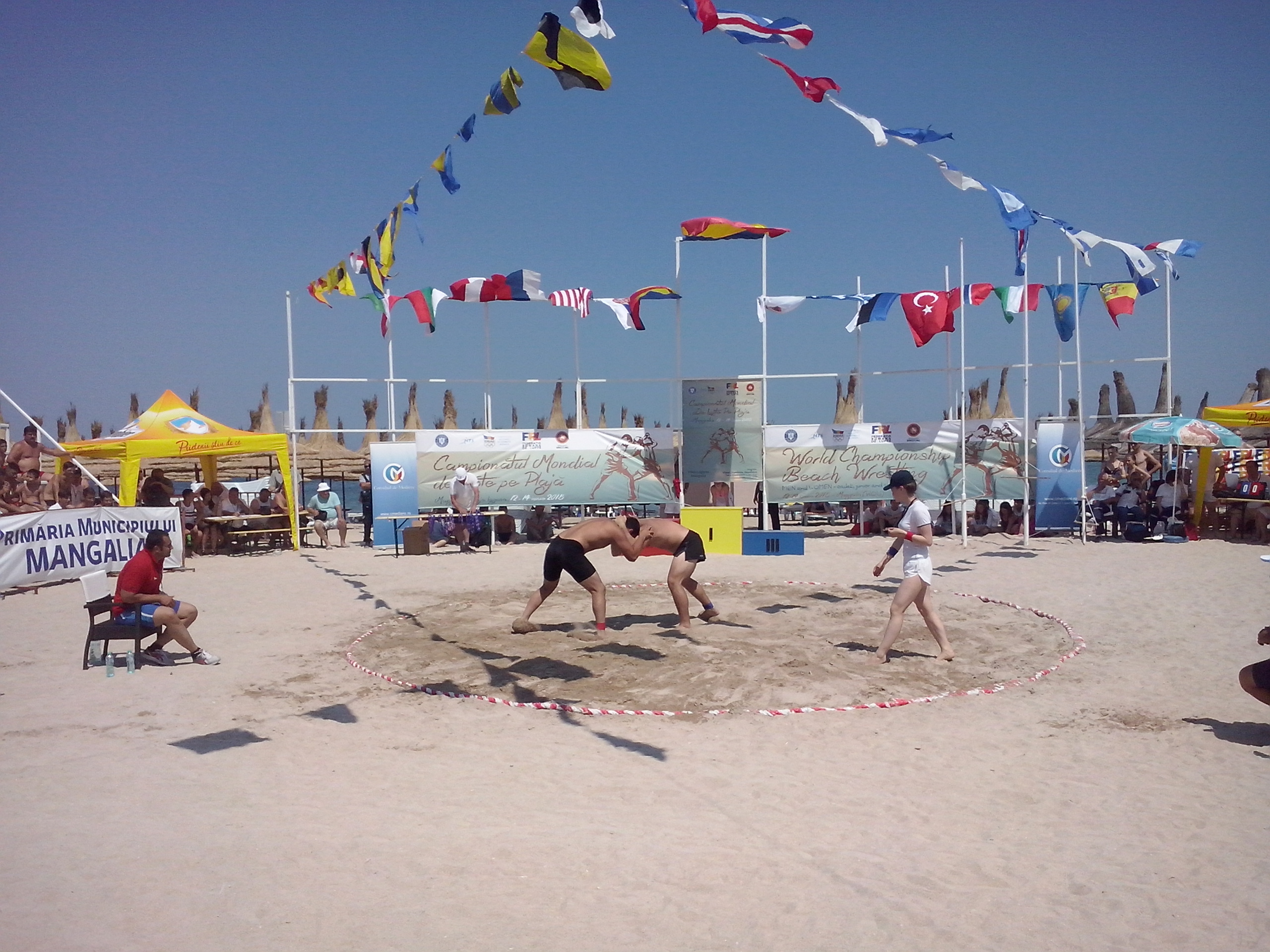 Pe plaja „Laguna” din Mangalia au debutat astăzi întrecerile Campionatului Mondial de lupte pe plajă.