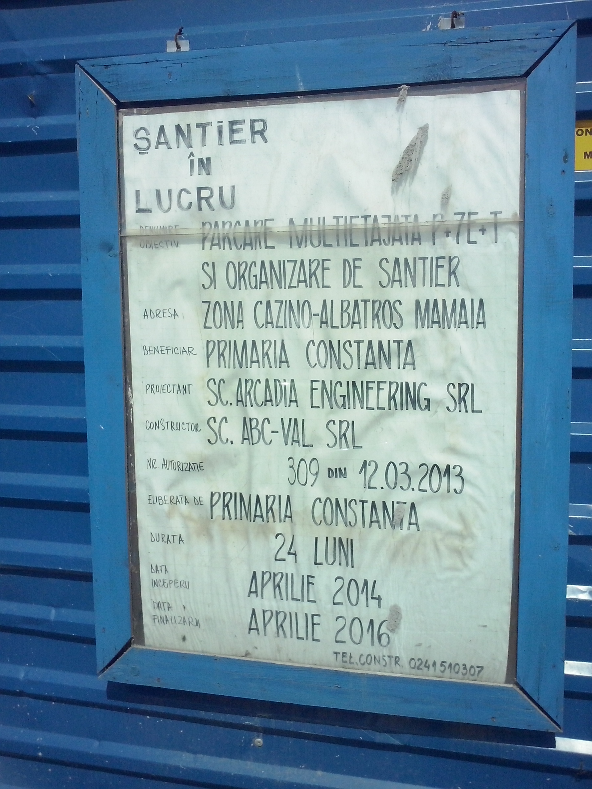 Anul trecut pe 4 aprilie, Primăria Constanța începea lucrările din cadrul proiectului „Construire parcare multietajată P+7E+T, în staţiunea Mamaia, Zona Cazinou-Albastros“.