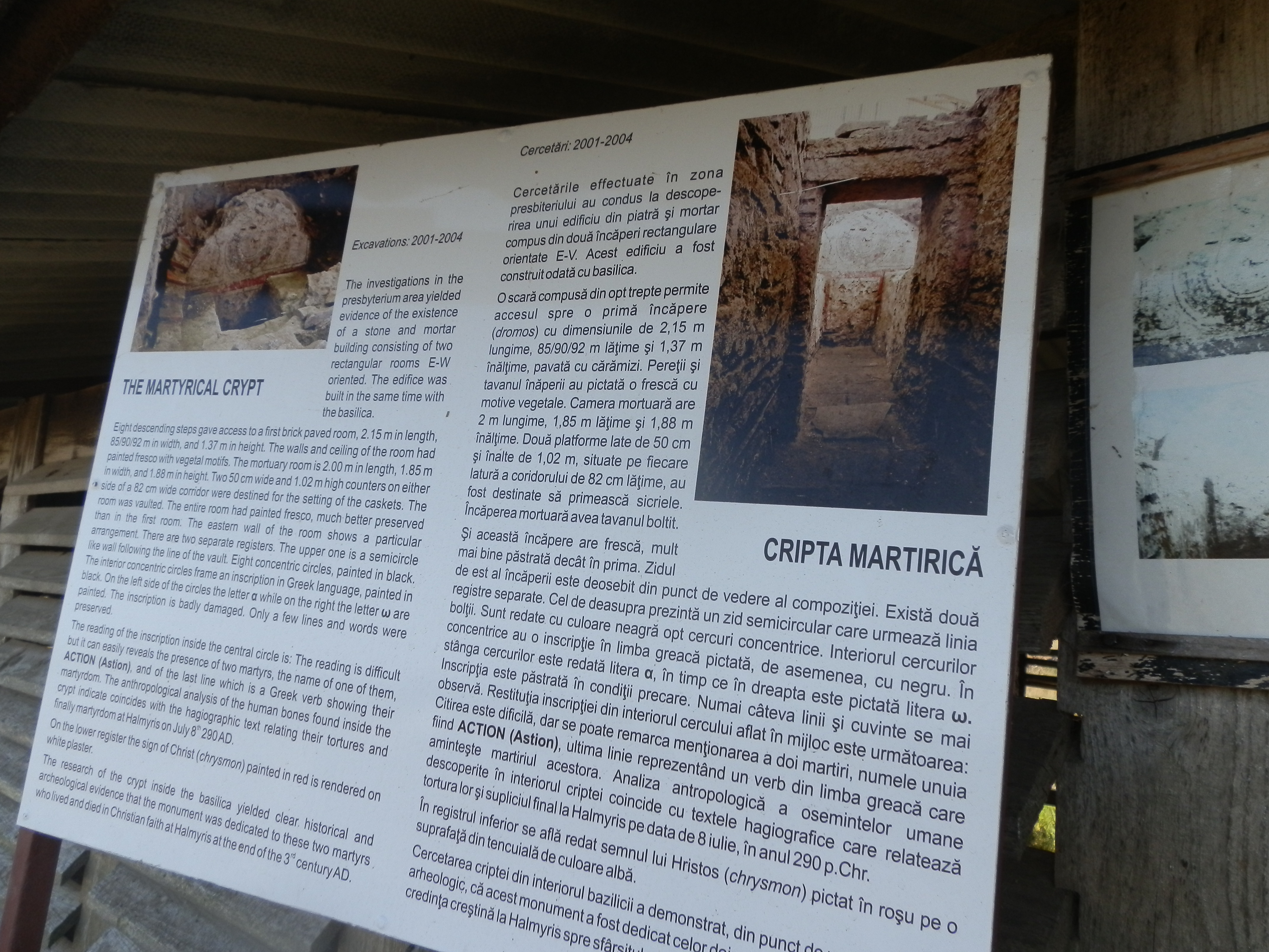 Cripta se afla sub altarul bazilicii Episcopale a Halmyrisului, localitate antică situată între Murighiol și Dunavăț, județul Tulcea.