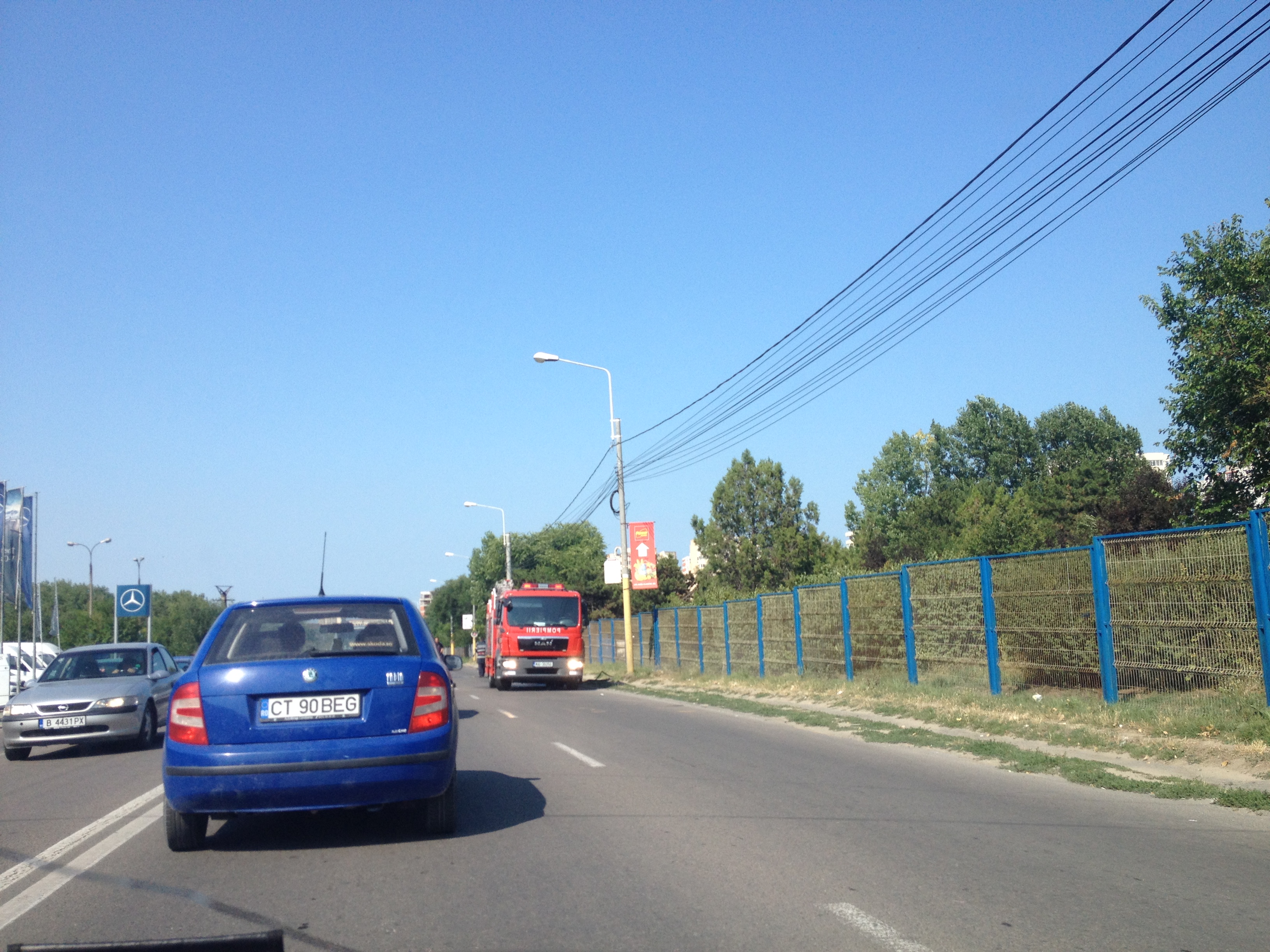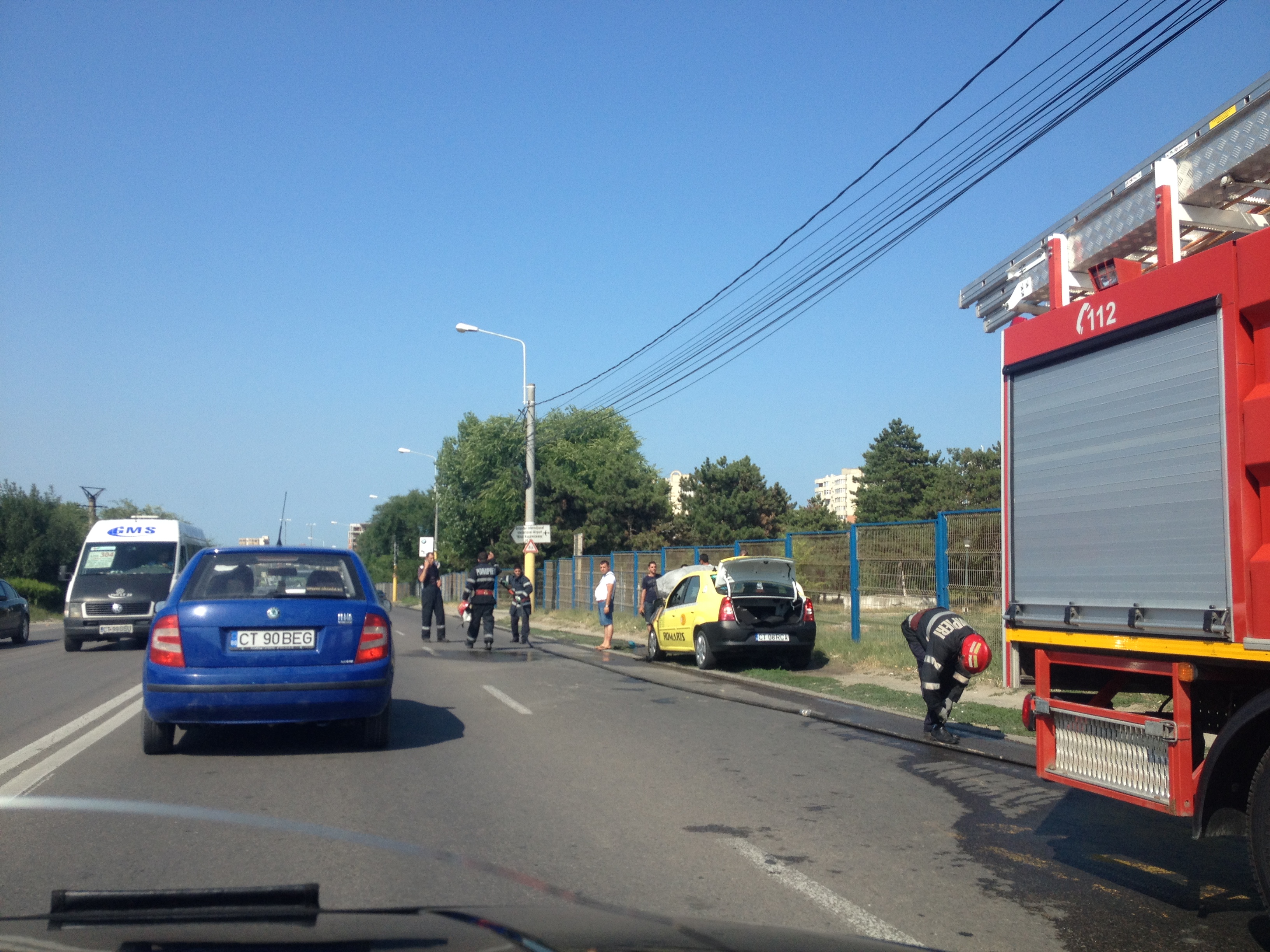 FOTO EXCLUSIV: Un taximetru a luat foc în mers pe bulevardul Aurel Vlaicu