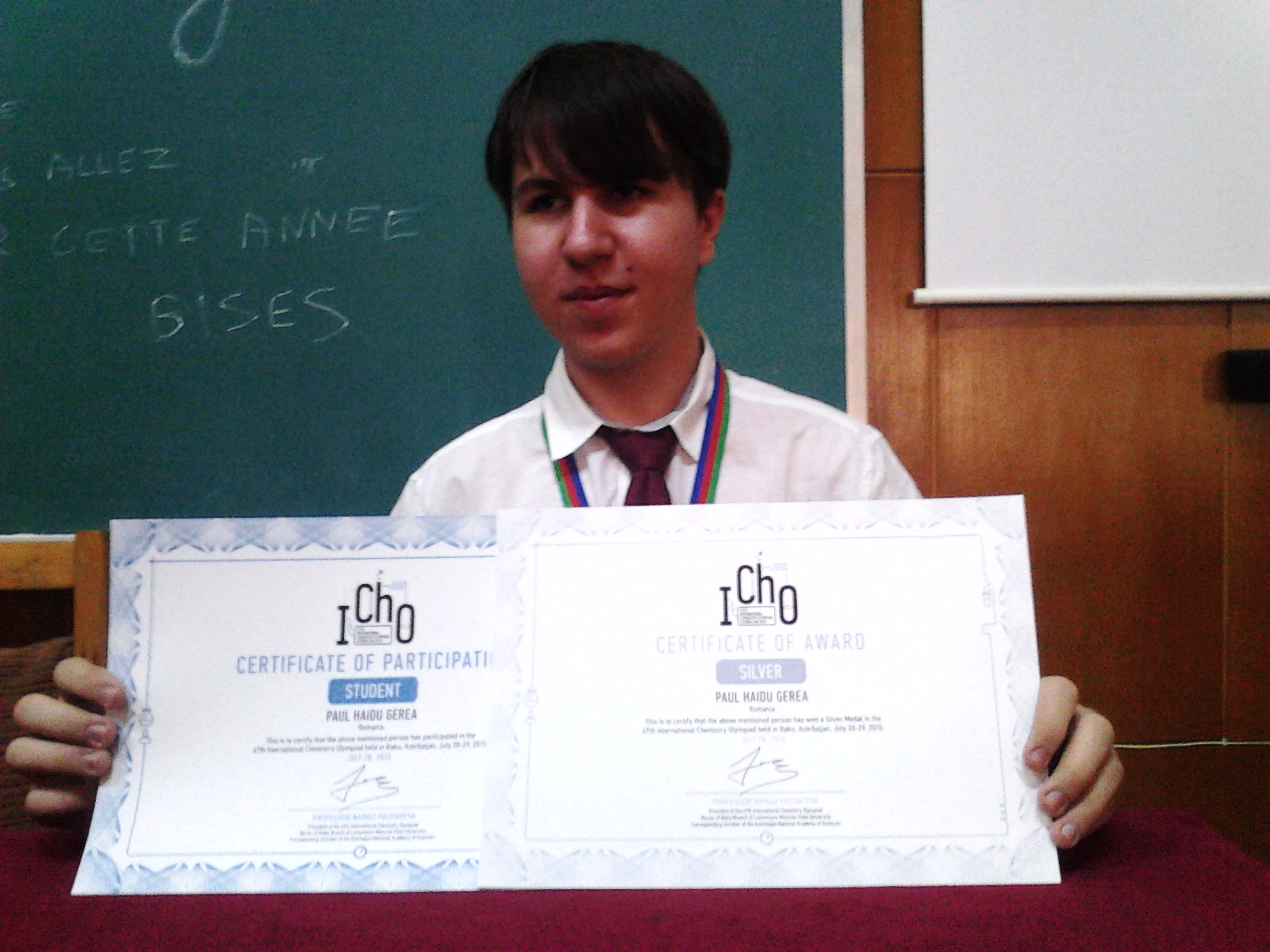 Tot în acest an şcolar, la începutul lunii mai, Paul Haidu-Gerea a cucerit argintul la Olimpiada Internațională de Chimie ”D. Mendeleev”, desfășurată în perioada 3 – 10 mai, la Erevan, în Armenia, și bronzul pe echipe la Olimpiada de Științe a UE, desfășurată între 26 aprilie – 3 mai la Klangfurt, în Austria.