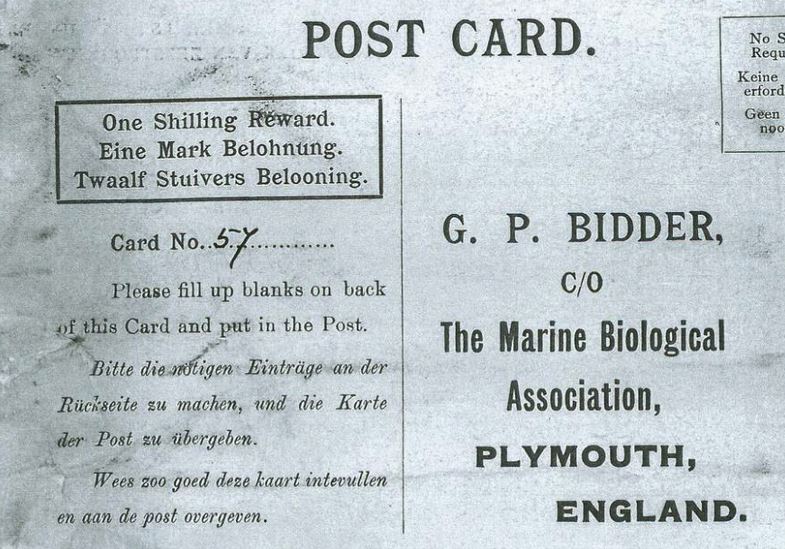 Cei doi au deschis recipientul şi au constatat că în ea se află o carte poştală pe care cineva notase câteva rânduri, prin care cerea ca aceasta să fie livrată Asociaţiei de Biologie Marină din Marea Britanie.