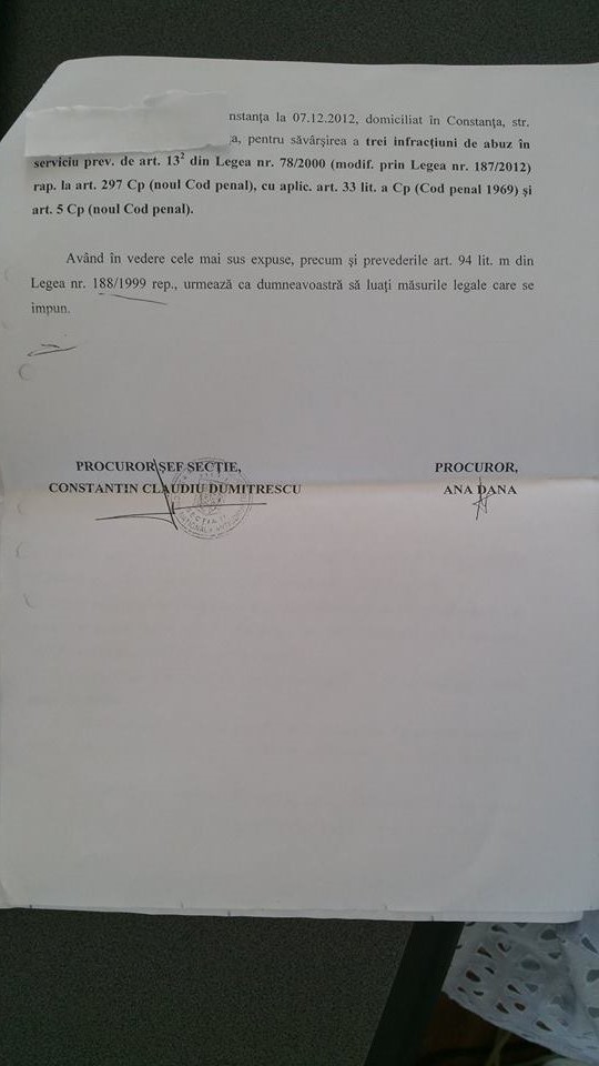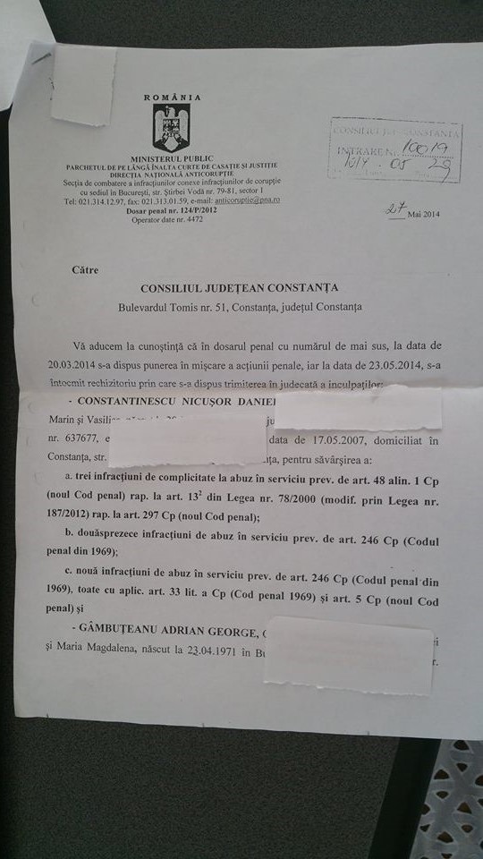Parchetul de pe lângă Înalta Curte de Casație și Justiție, Direcția Națională Anticorupție a solicitat Consiliului Județean Constanța suspendarea din funcție a directorului general al Regiei Autonome Județene de Drumuri și Poduri (RAJDP) Constanța, Adrian Gâmbuțeanu. În documentul trimis CJC se arată că acesta a fost trimis în judecată pentru săvârșirea a trei infracțiuni de abuz în serviciu, iar procurorii DNA cer să fie luate măsurile legale ce se impun conform legii 188/1999, art.94, lit.m. Conform actului normativ citat, legea 188/1999 privind statutul funcționarului public, art. 94 referitor la suspendarea raportului de serviciu, lit. m prevede ” în cazul în care s-a dispus trimiterea in judecată”.