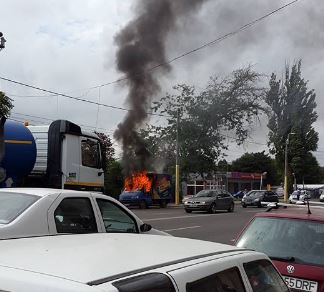(FOTO) Maşină în flăcări pe bulevardul IC Brătianu