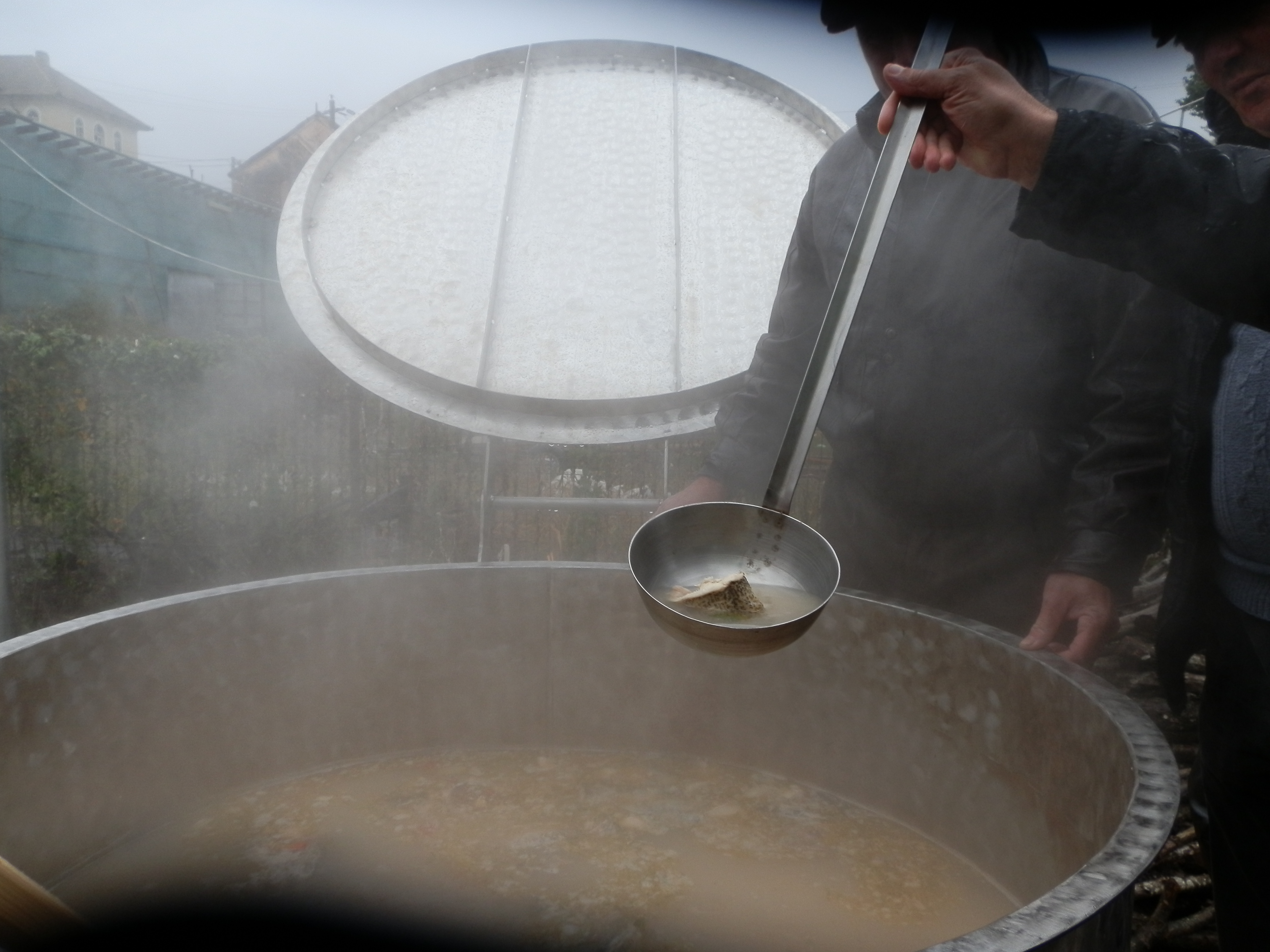 Neașteptat de multă lume pentru o zi mohorâtă de toamnă. Focul trosnea sub cele peste 50 de ceaune, în care fierbea borșul pescăresc. Pentru ediția din 2015, a fost creat și unul special, cântărește o tonă și în el s-au pus mai multe feluri de pește: crap, plătică, singer, caras, biban,specii din Lacul Razelm, după cum spune primarul localității Ion Eugen :