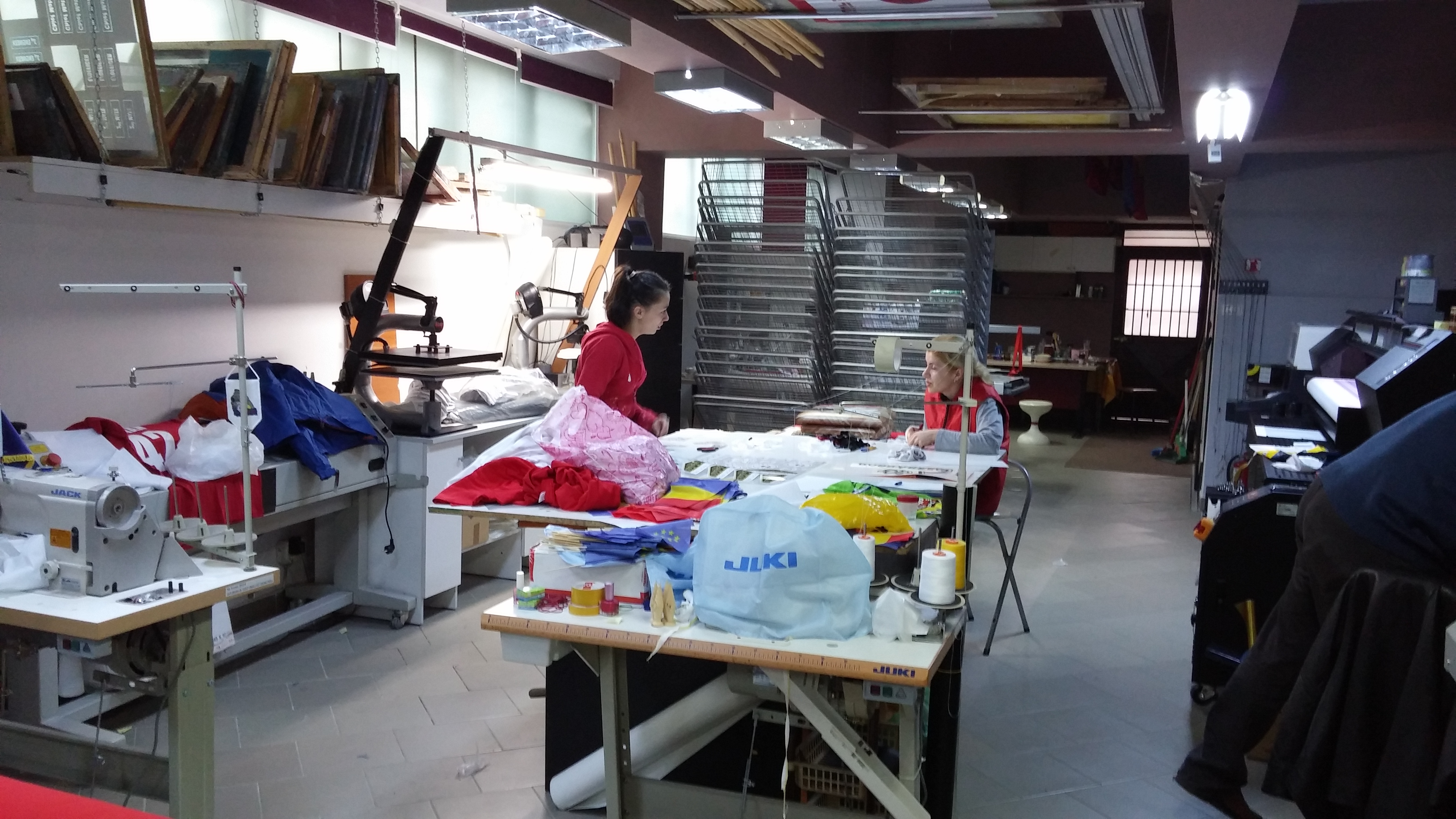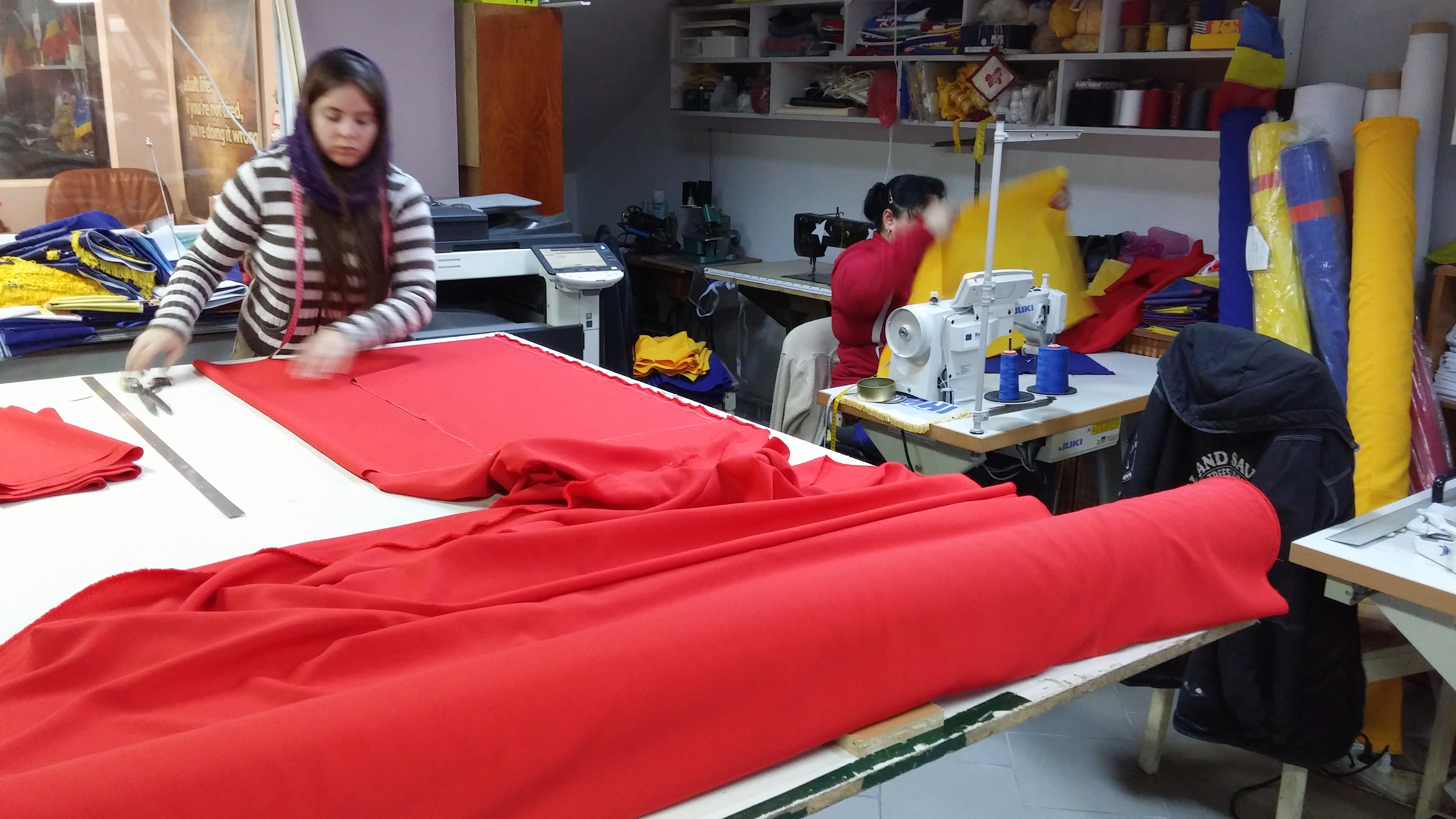 „Lucrez la drapelul României. Colega mea îl croiește, eu îmbin culorile și finalizez cu tot ce trebuie.  Anul acesta este prima dată când lucrez la steagul României. Realizarea celor mai simple durează aproximativ 10 – 15 minute. Cu cât este mai complicat, cu atât durează mai mult”, ne-a spus doamna Elena.