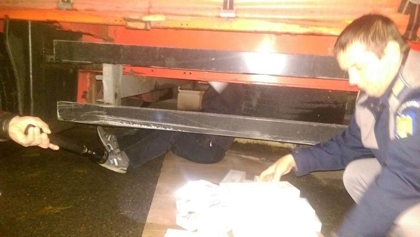 Poliţiştii de frontieră au efectuat controlul fizic al autocamionului cu semiriemorcă, în baza analizei de risc, descoperind ascunse, într-un locaş special amenajat pe şasiul semiriemorcii, 1.430 de pachete de ţigări netimbrate.