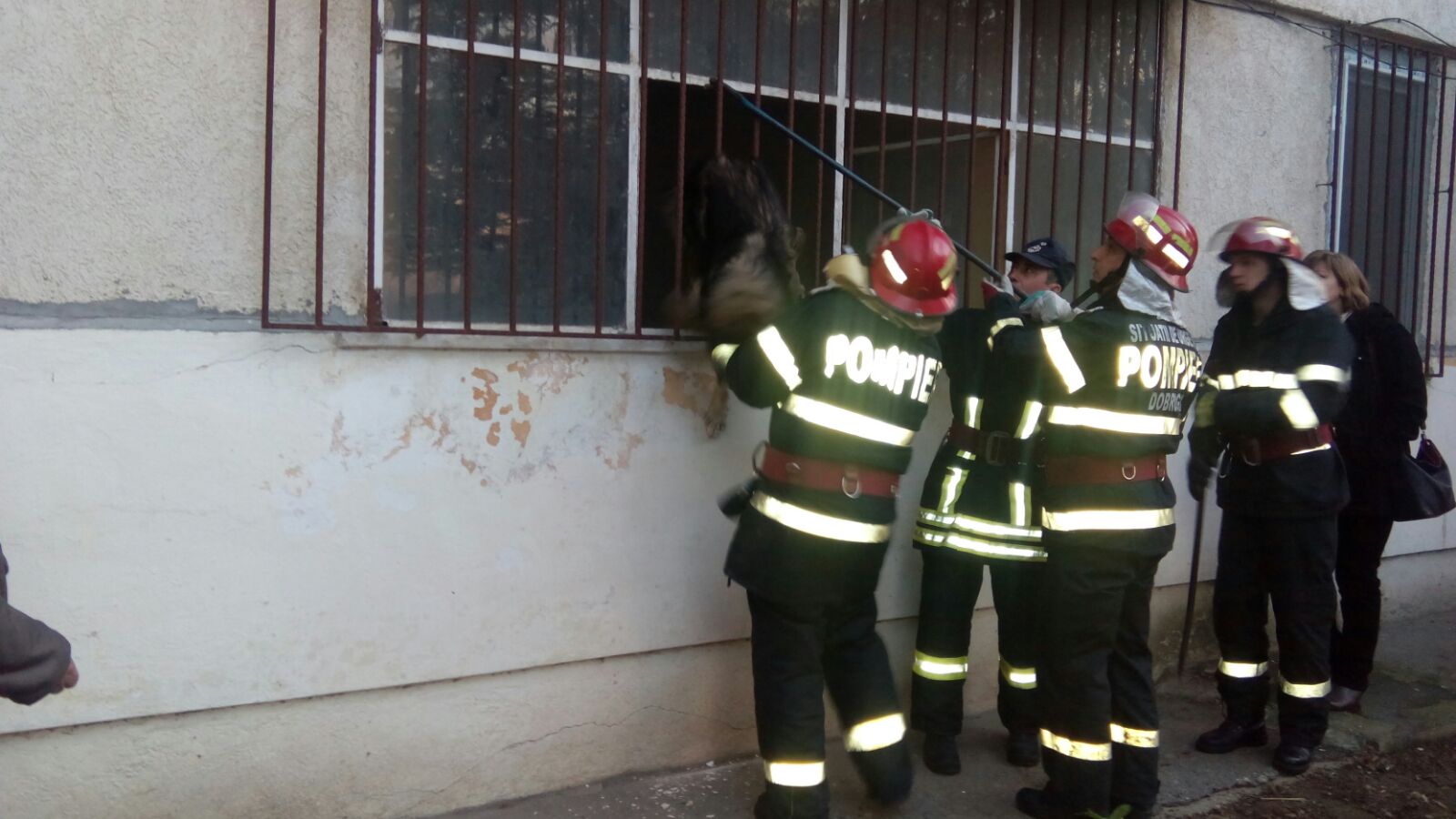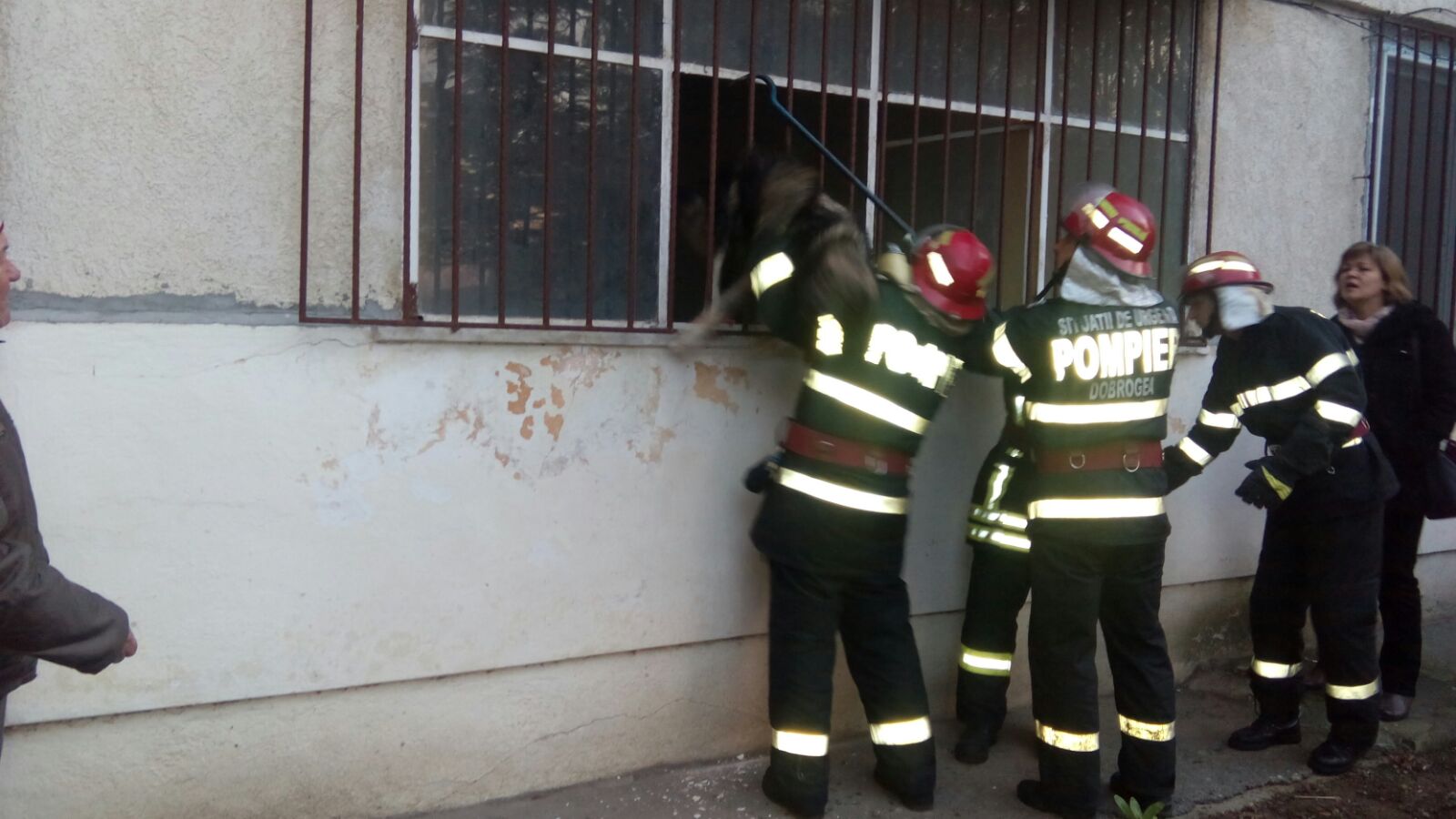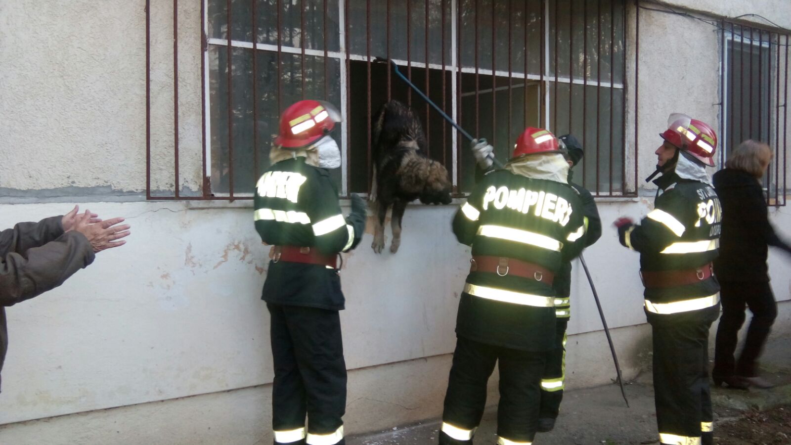 Pompierii ISU Dobrogea au salvat un căţel prins într-un grilaj. Acţiunea a avut loc luni după-amiază, pe Aleea Mălinului din Constanţa.