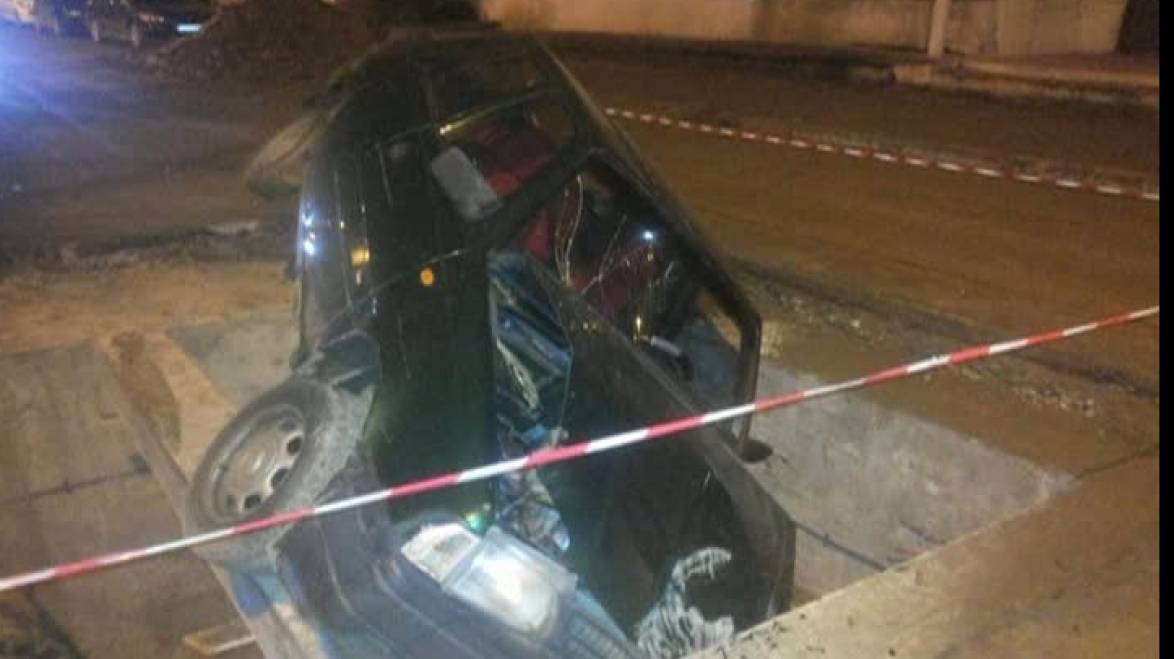 Un șofer a fost pe punctul să-și piardă viața, după ce mașina pe care o conducea a căzut într-o gaură imensă din asfalt.