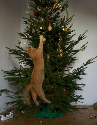 Dacă nu sunteţi convinşi de idee, gândiţi-vă cum ar fi fost dacă aveaţi câine. Şi îl lăsaţi singur, lângă pomul din casă. Parcă tot mai frumos reuşeşte să îl decoreze o pisică, nu-i aşa?