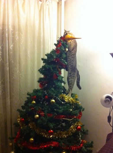 Plus decorarea bradului de Crăciun. Care, oricât de plăcută ar fi, este, şi ea, destul de solicitantă. Aşa că ar fi bine să aveţi ajutoare de orice fel, ca în imaginile de mai jos.