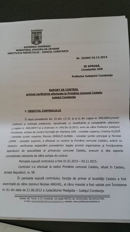 Radio Constanța vă prezintă în exclusivitate fragmente din raportul de control privind verificările efectuate la primăria comunei Castelu.