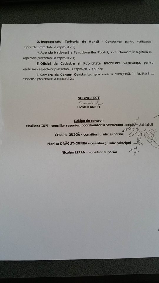 Instituția Prefectului a efectuat, luna trecută, un control la primăria Castelu.