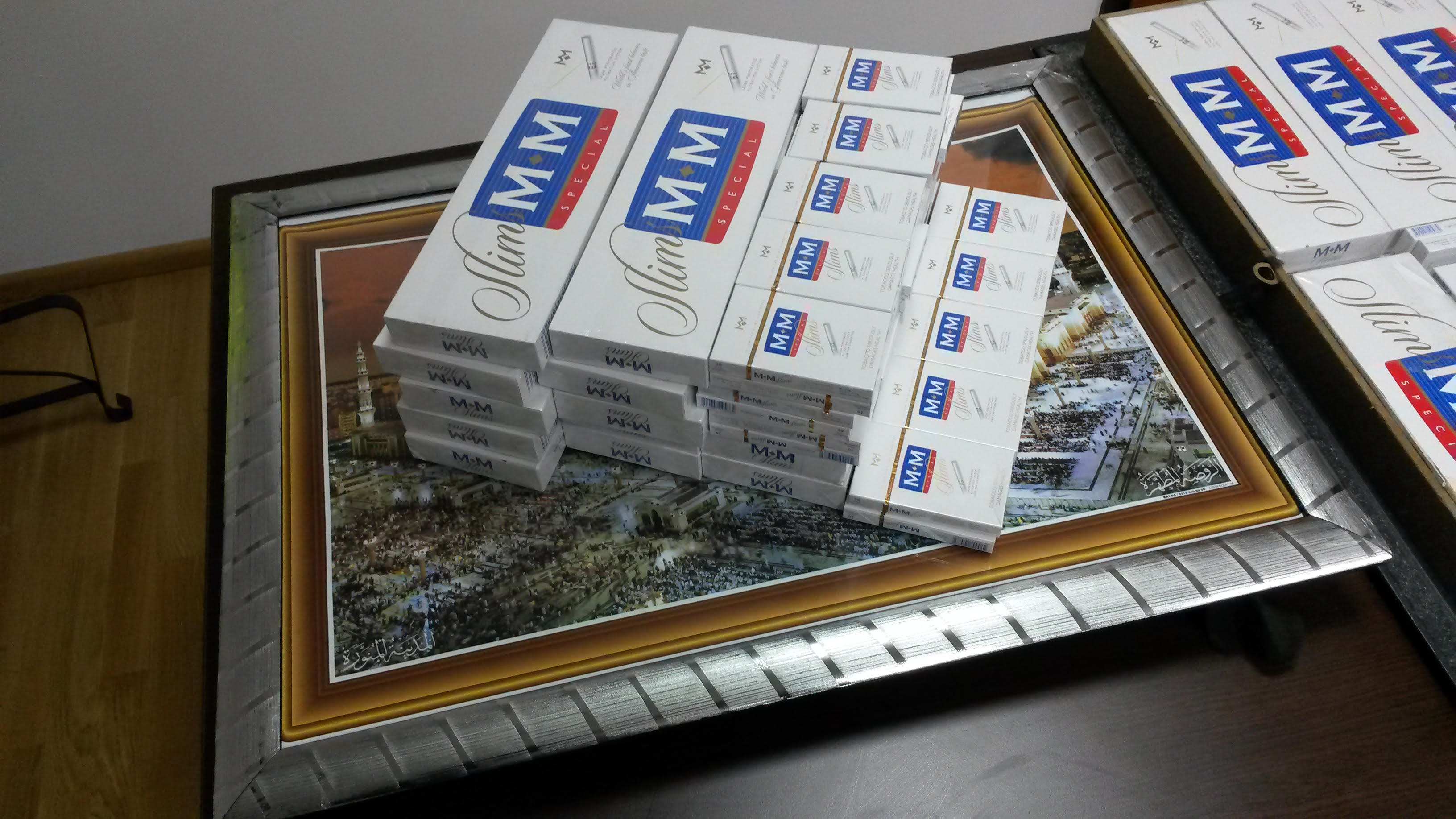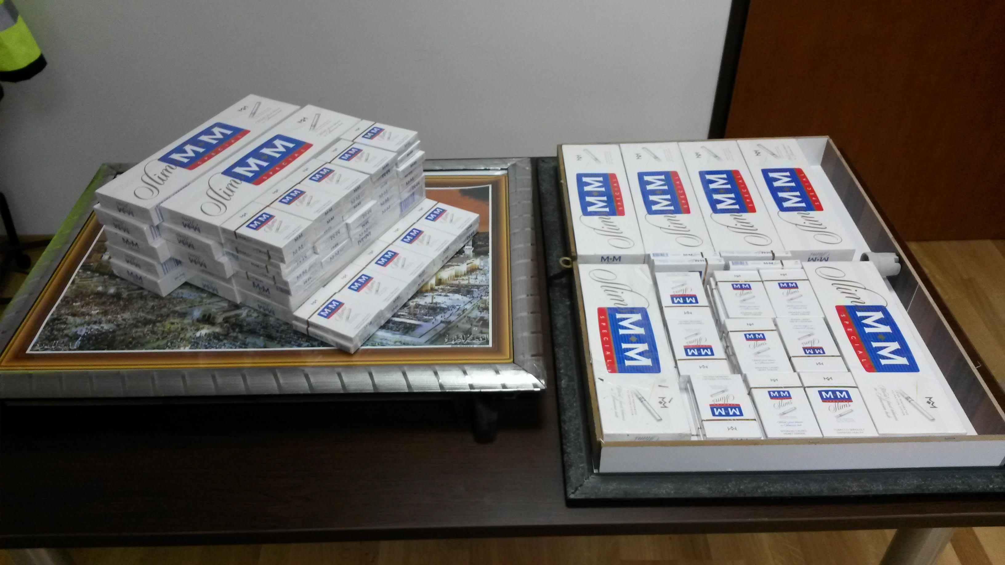În urma controlului amănunţiţ poliţiştii de frontieră au descoperit, ascunse în două tablouri cu iluminare electrică, depozitate în cala bagajelor, 320 de pachete cu ţigarete netimbrate. Persoanele în cauză, un bărbat şi o femeie, au declarat că cele două tablouri le aparţin şi au achiziţionat ţigaretele de pe teritoriul Turciei, fără a putea prezenta documente justificative, astfel încât întreaga cantitate de 6.400 de ţigarete, evaluată la aproximativ 3.200 lei, a fost confiscată.