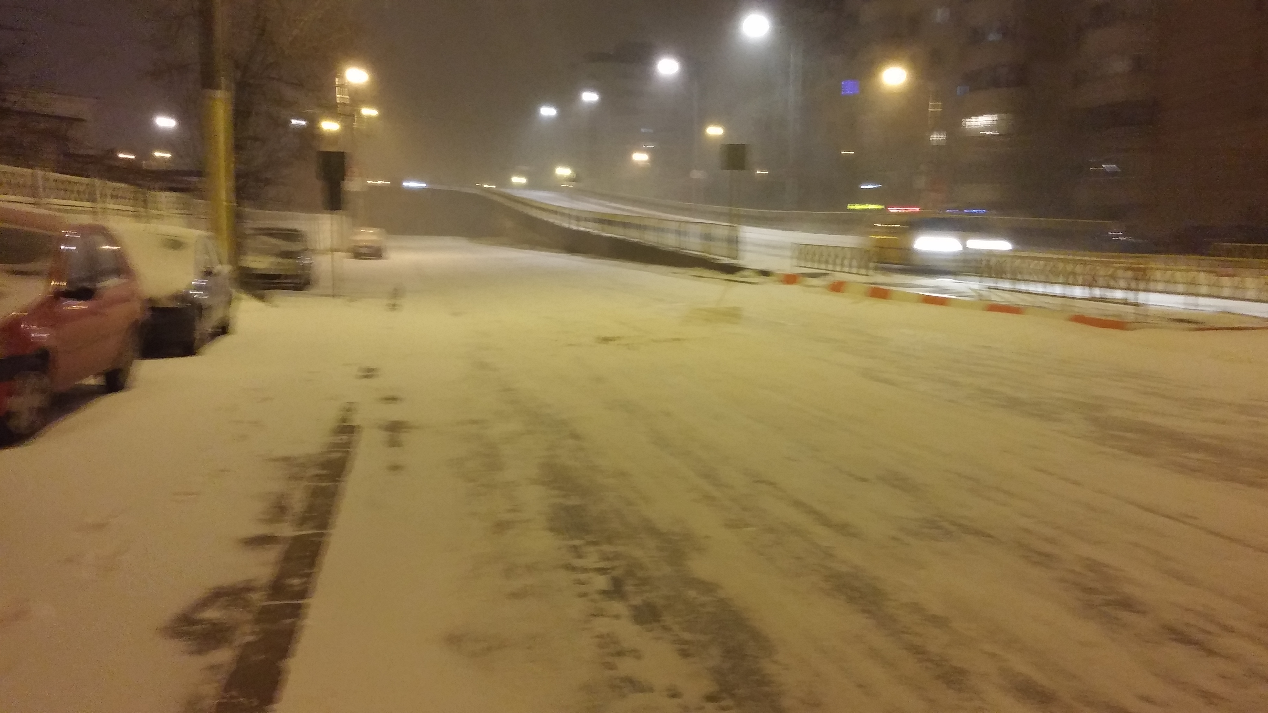 În municipiul Constanţa se circulă în condiţii de iarnă. Autorităţile intervin pe principalele artere cu utilaje care dau la o parte zăpada şi aruncă material antiderapant. Şeful Poliţiei Locale, Dan Bratu recunoaşte că sunt străzi pe care încă utilajele nu au ajuns, cum ar fi Primăverii, însă adaugă că nu există nici chiar străzi secundare care să fie complet impracticabile.