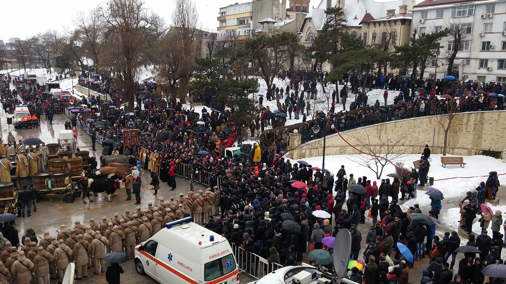 Cincii mii de constănţeni participă, miercuri, pe faleza de la Cazino, la slujba de Bobotează. 150 de mii de sticle cu Agheasmă Mare sunt oferite credincioşilor din Constanţa, la sfârşitul ceremoniei religioase. Potrivit tradiţiei, după Sfânta Liturghie, arhiepiscopul Tomisului va conduce procesiunea tradiţională de Bobotează.