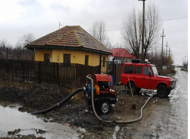 Pompieri militari din cadrul Secției Dragalina au fost solicitaţi să acţioneze în data de 6 februarie pentru evacuarea apei acumulate în exces în zece gospodării din comuna Dragalina, situate pe strada Garoafei.