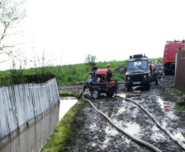 Pompierii militari au intervenit cu autospeciale și motopompe pentru evacuarea apei din zece gospodării cetăţeneşti, afectate de inundații.