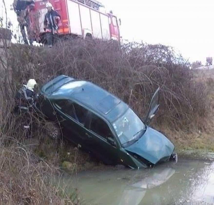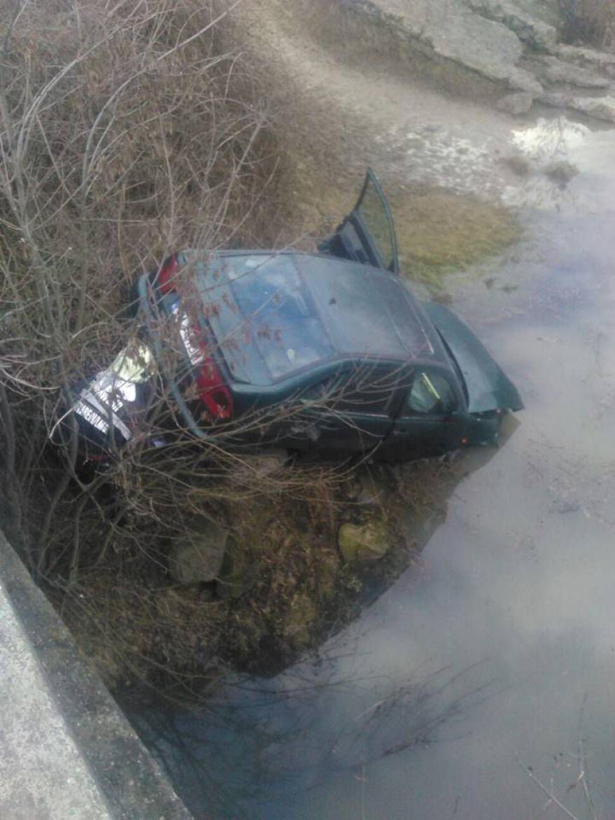 Trei persoane au ajuns astăzi la spital, după ce mașina în care se aflau a fost lovită pe DN 68A, de un alt autoturism, ajungând într-o râpă de pe marginea drumului.