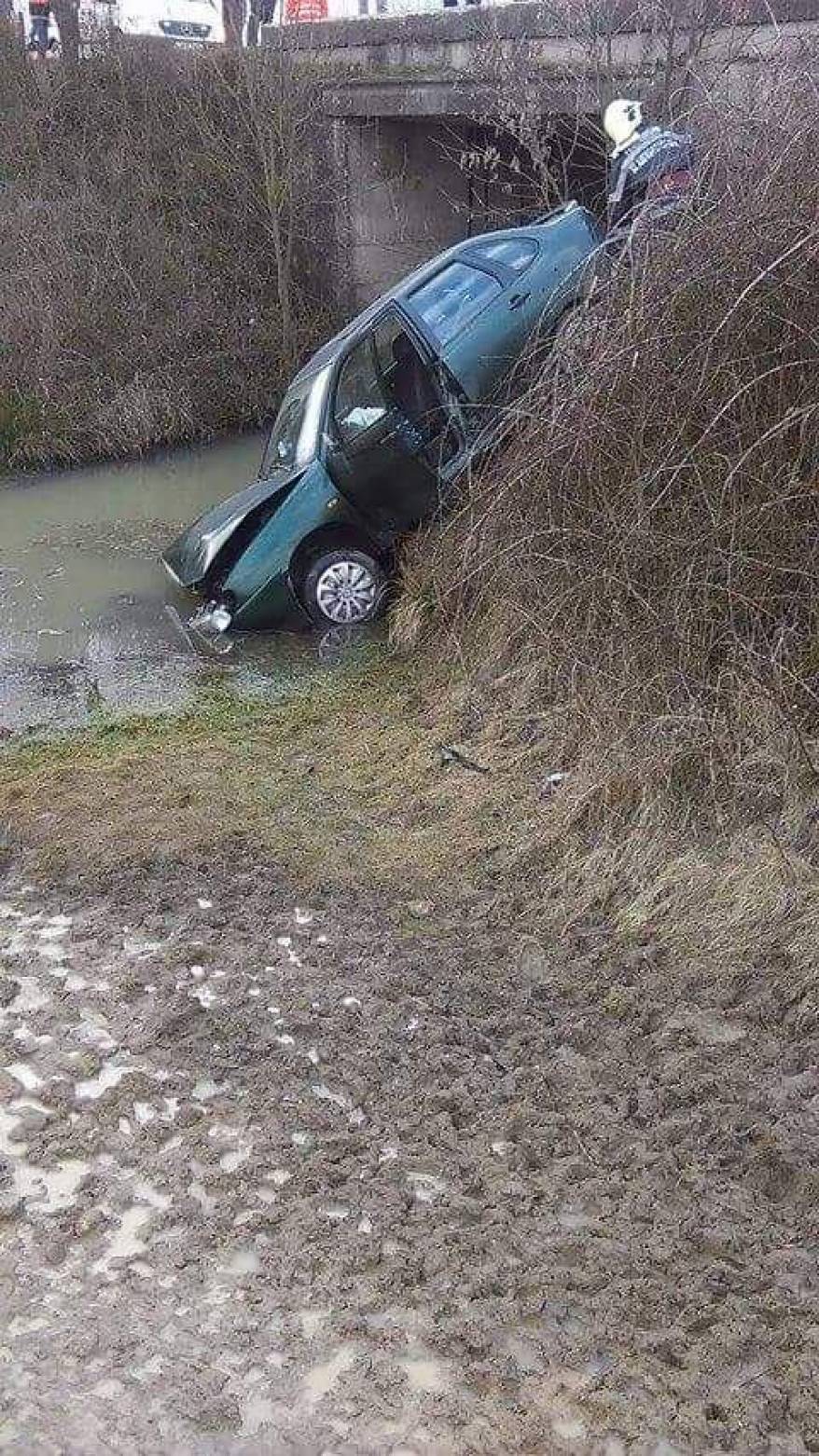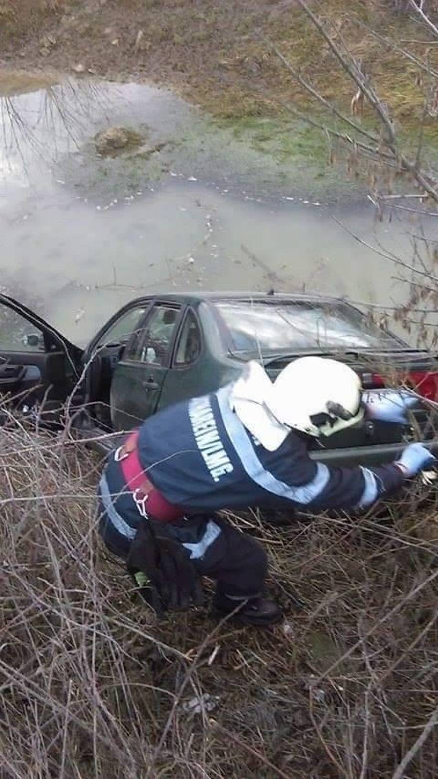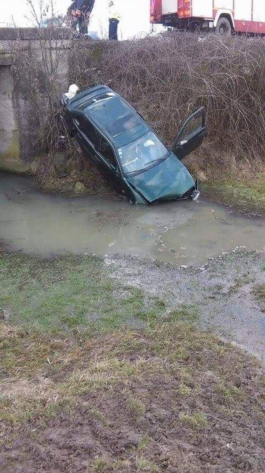 În urma impactului, autoturismul care circula regulamentar, condus de un bărbat de 41 de ani și în care se aflau cinci persoane, a ajuns într-o râpă de pe marginea drumului.