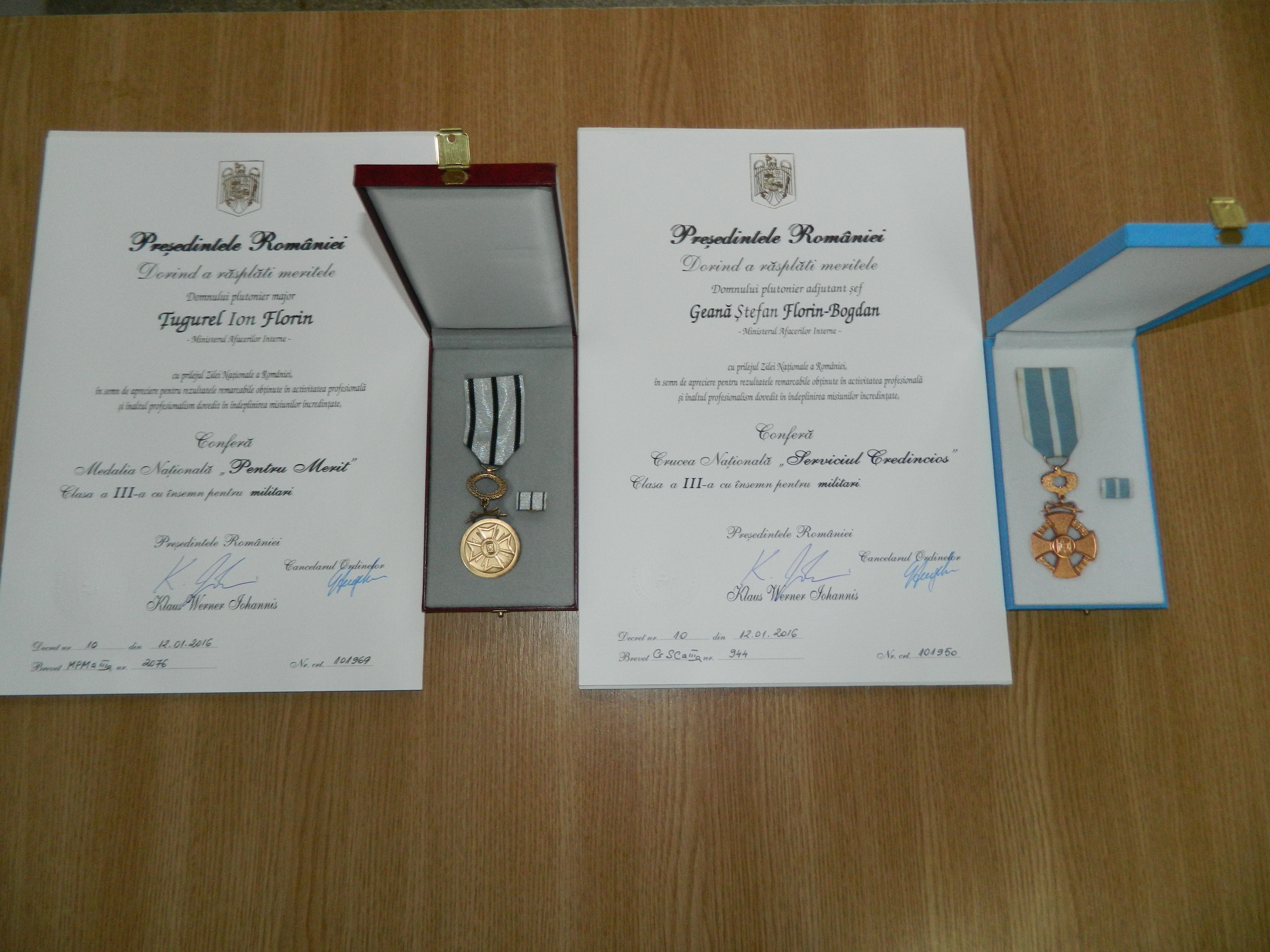 Cei doi au primit Crucea Naţională „Serviciul Credincios”, clasa a III a, respectiv Medalia Naţională „Pentru Merit”, clasa a III a, cu însemne pentru militari.