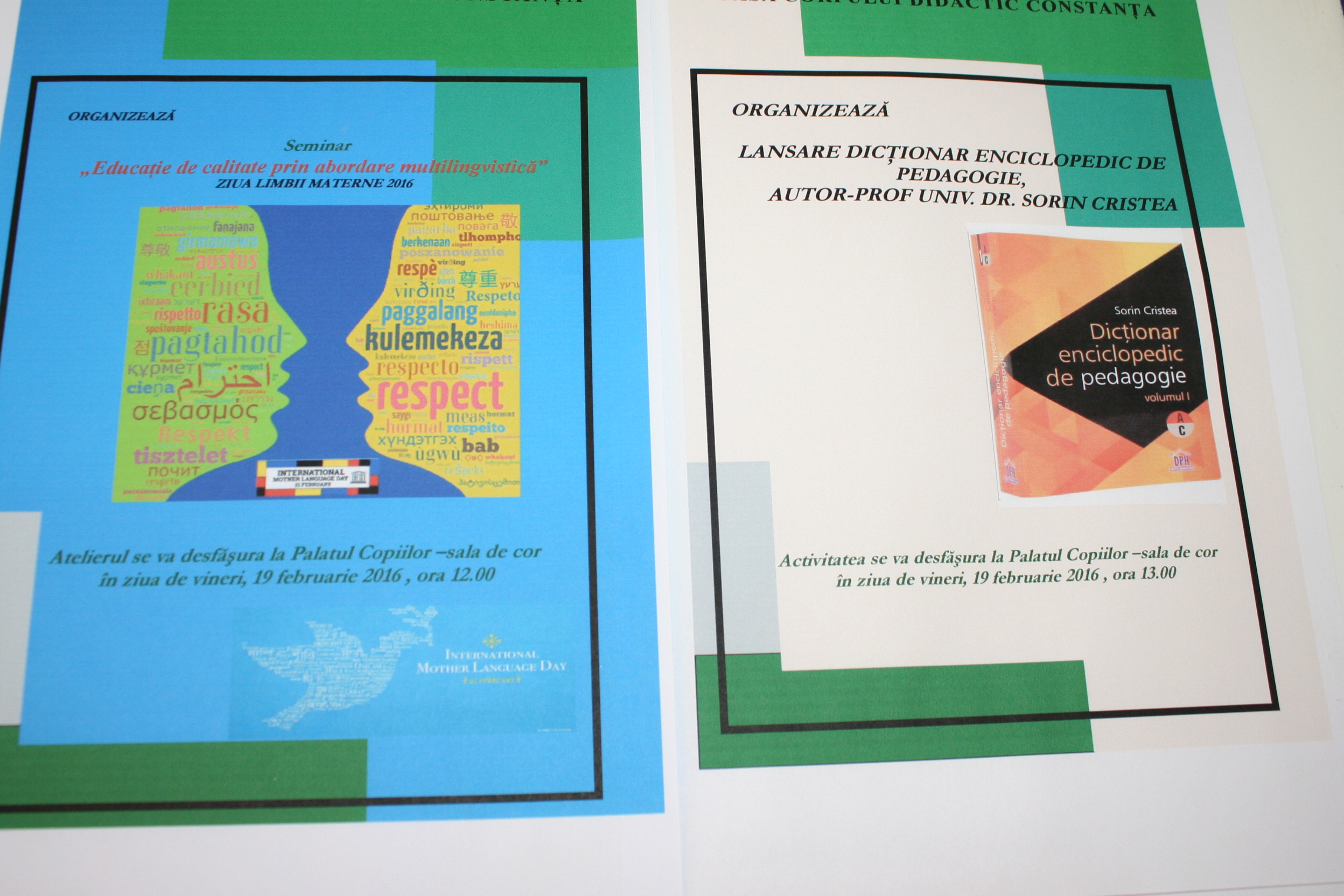 Casa Corpului Didactic Constanţa, a organizat vineri, 19 februarie 2016, ora 12, Seminarul „Educaţie de calitate prin abordare multilingvistică”, cu ocazia Zilei Internaţionale a Limbii Materne 2016. Prin acest eveniment, marcat în fiecare an, ne propunem să promovăm recunoaşterea şi utilizarea limbilor materne în judeţul Constanţa, în special a limbilor grupurilor minoritare.