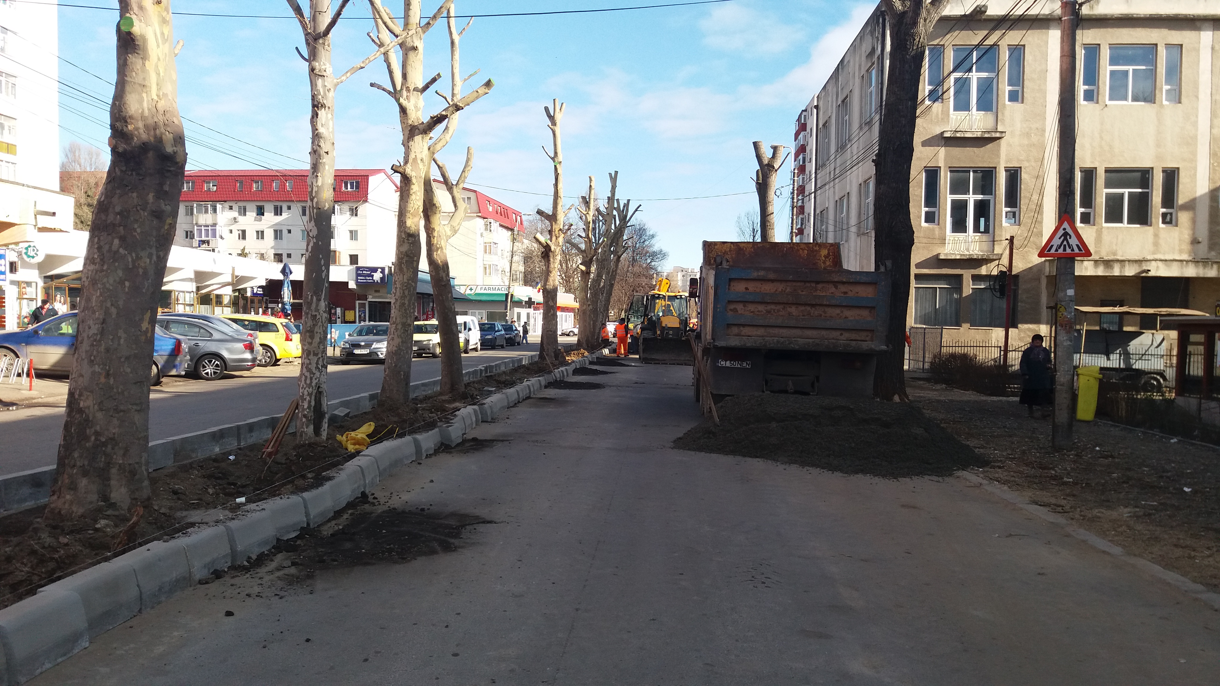 Aici se reface scuarul care separă sensurile de mers.