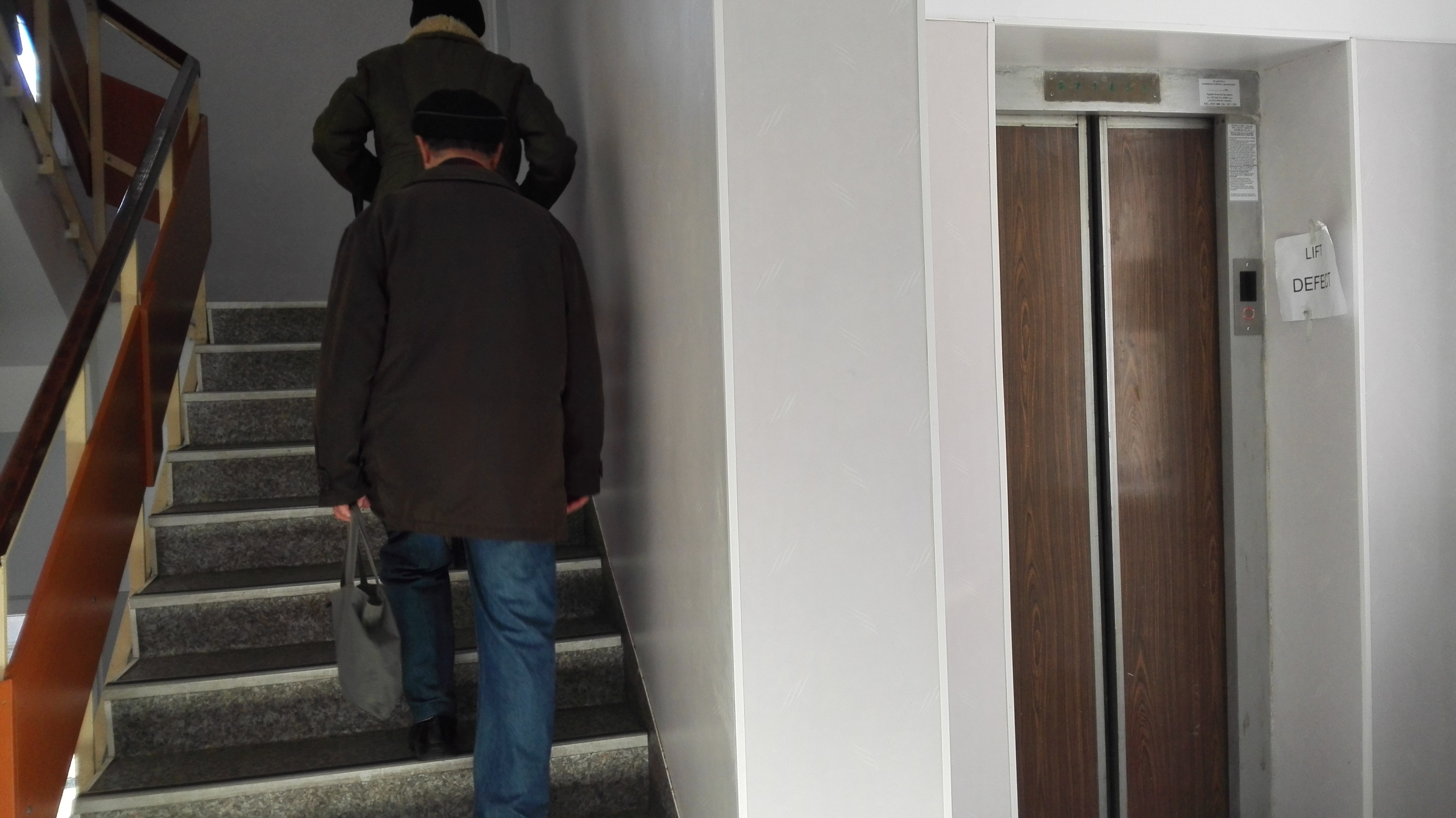 La Policlinica cu Plată 2, din zona ICIL există rampă de acces, există şi lift, doar că este defect de câteva luni bune. Doamna Perian spune că a făcut o sesizare în acest sens, dar … nu s-a rezolvat nimic.