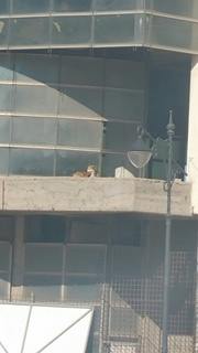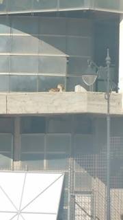 Noi am surprins doi câini fără stăpân care își făceau siesta de după-amiaza la soare, la unul dintre etaje.