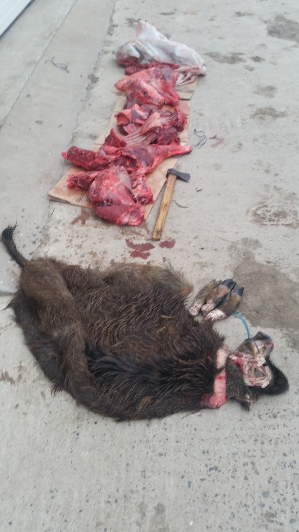 Poliţiştii de frontieră au extins cercetările și au descoperit în apropiere, într-un canal cu apă, resturi dintr-un exemplar de porc mistreț (3 copite, o bucată de piele și râtul).