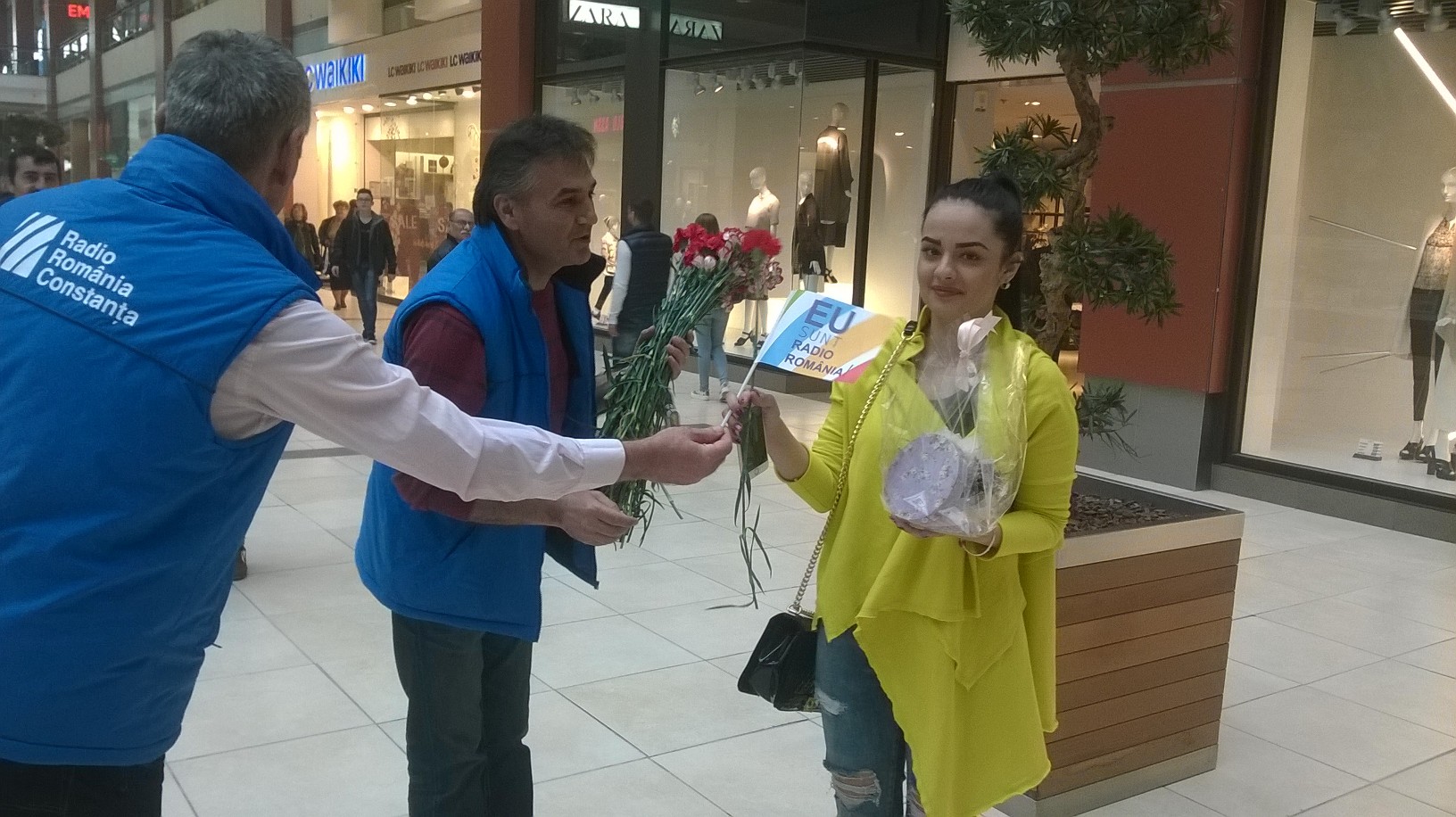 Echipa Radio Constanța oferă flori doamnelor și domnișoarelor, cu ocazia Zilei Femeii, la City Park Mall.