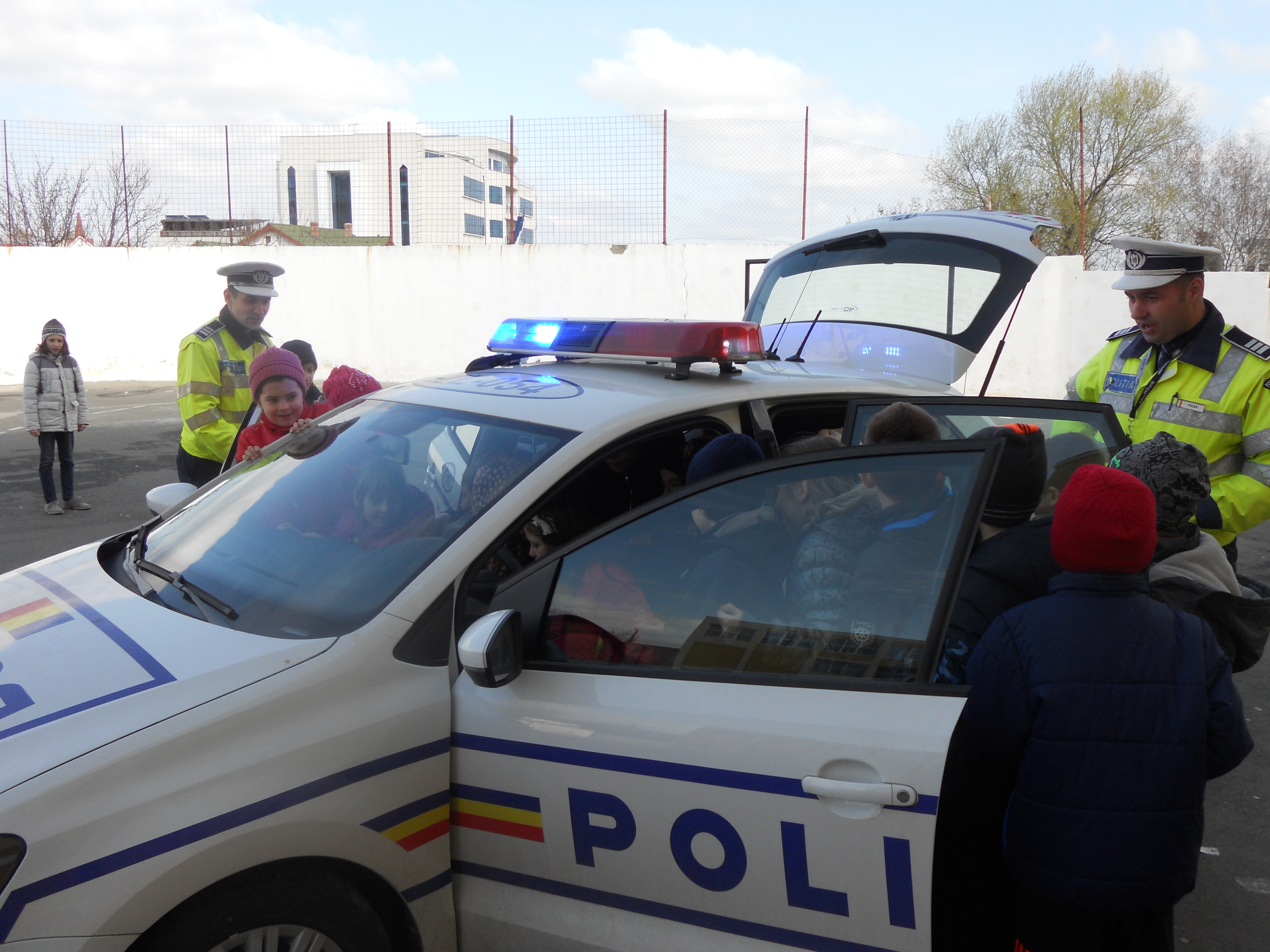 Participanții la acțiune au beneficiat de o surpriză din partea polițiștilor, oferindu-li-se posibilitatea de a se familiariza cu modul de utilizare a unei autospeciale din dotarea Poliției Rutiere.