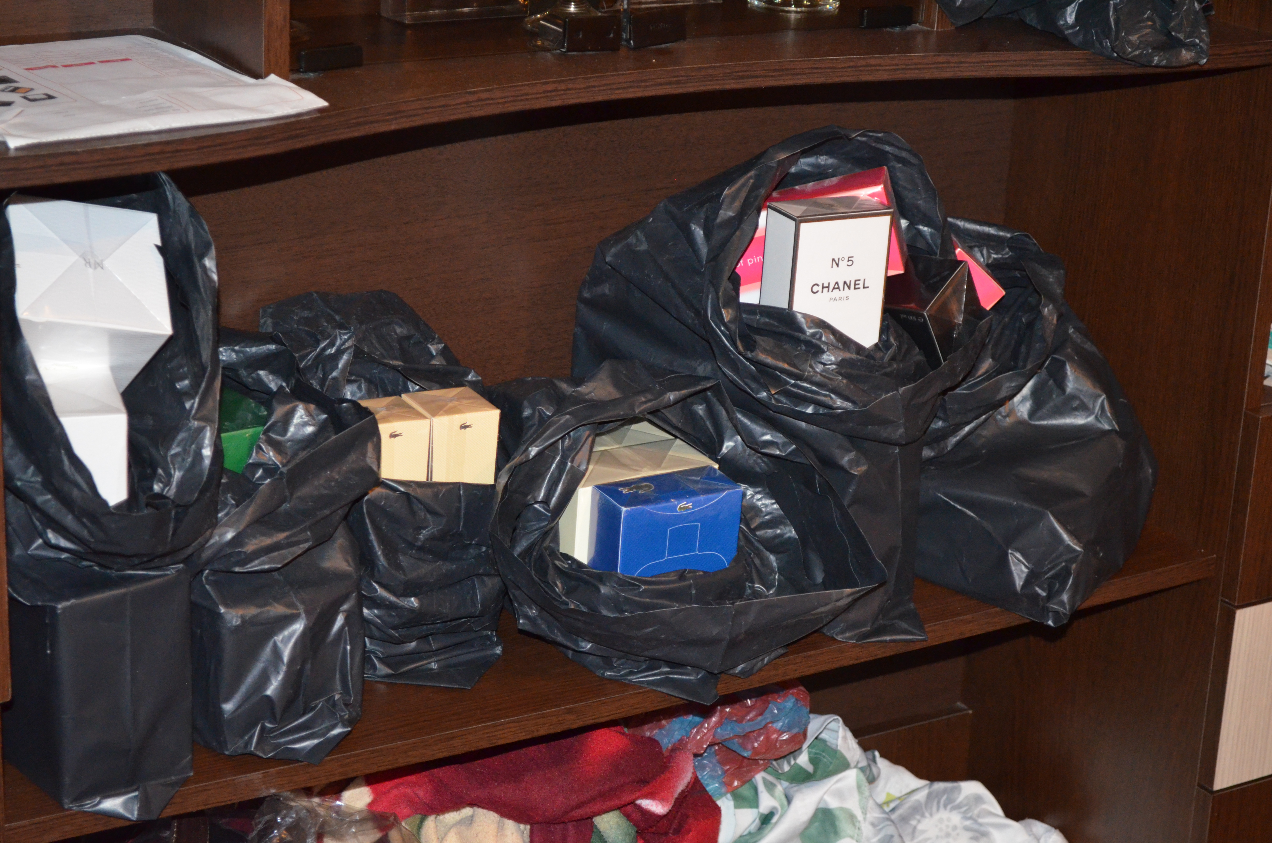 În urma percheziţiilor au fost ridicate în vederea confiscării un autoturism marca Peugeot, diverse sume de bani, 1.178 pachete cu ţigări diferite mărci, 33 parfumuri diverse mărci, susceptibile a fi contrafăcute şi 5 brăţări din metal galben.
