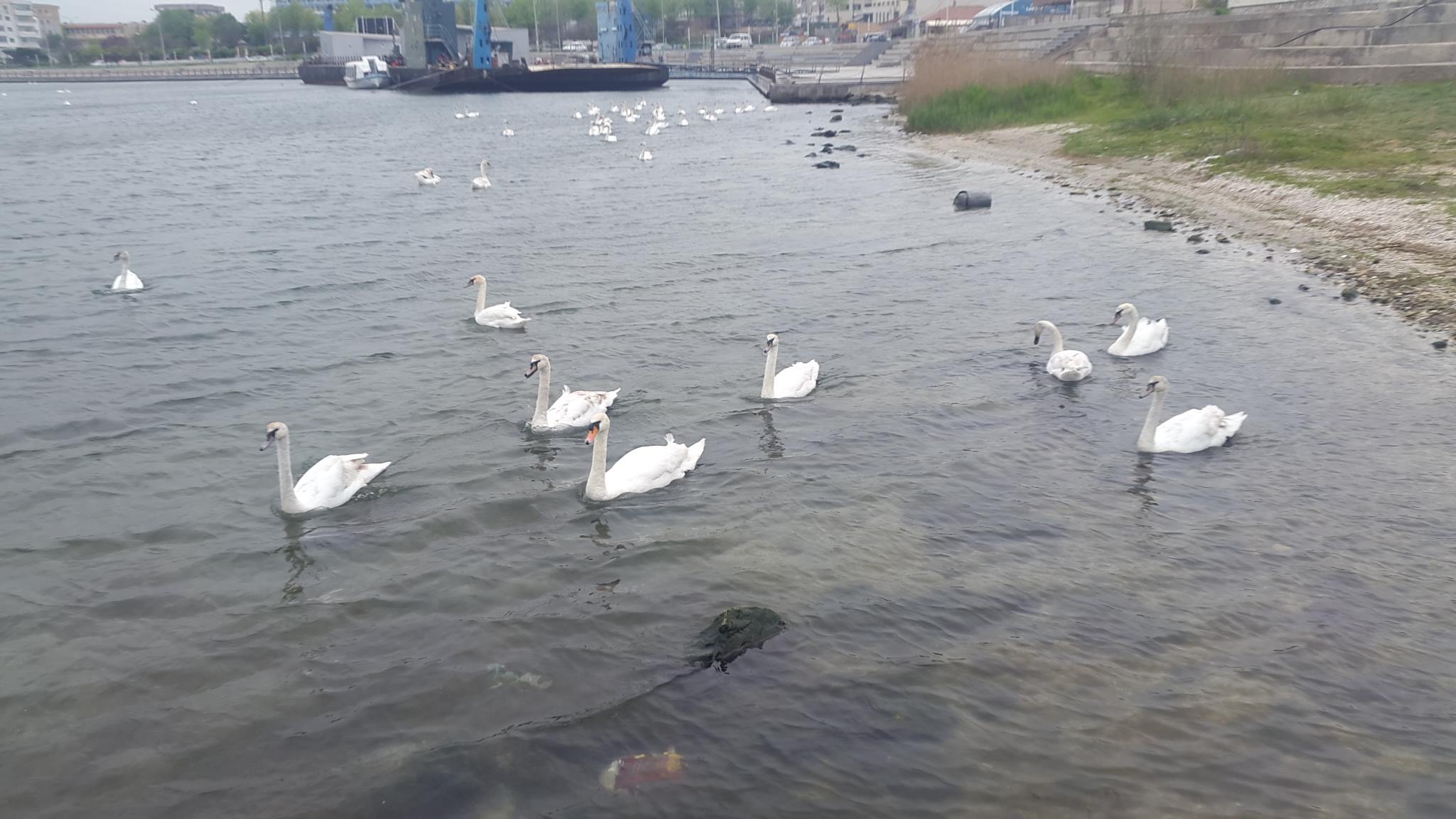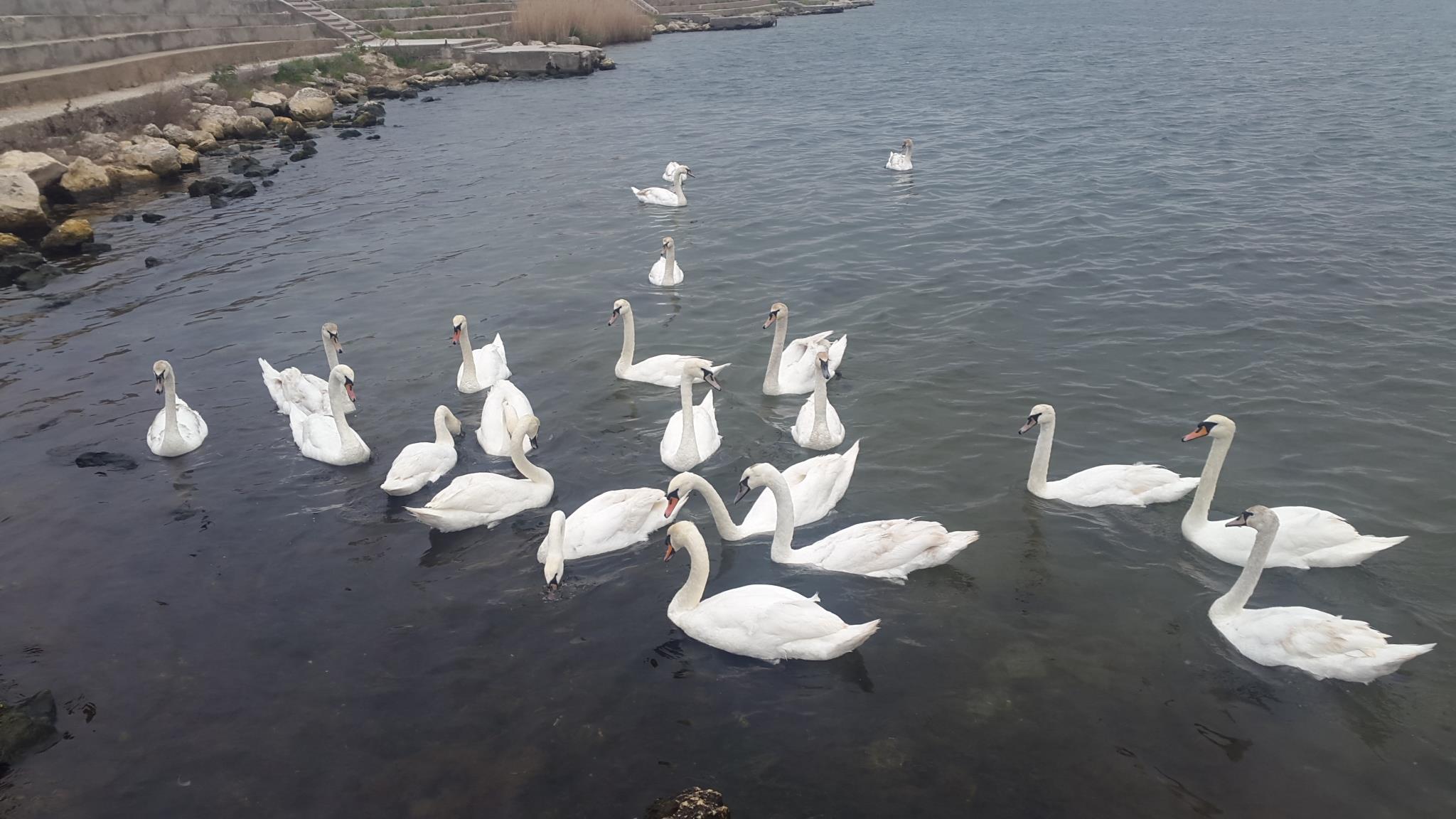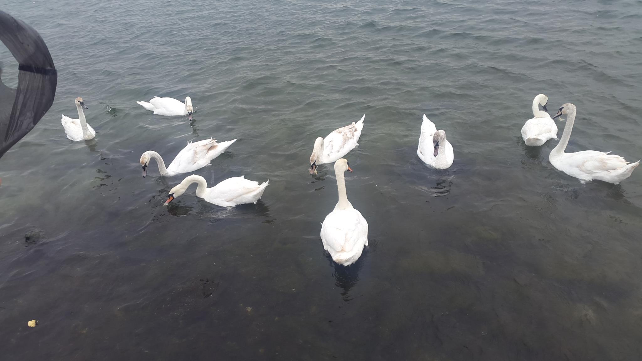 Vremea nefavorabilă de afară nu pare să afecteze stolul de lebede ce a decis, în urmă cu mai bine de 10 ani de zile să poposească în portul turistic Mangalia.