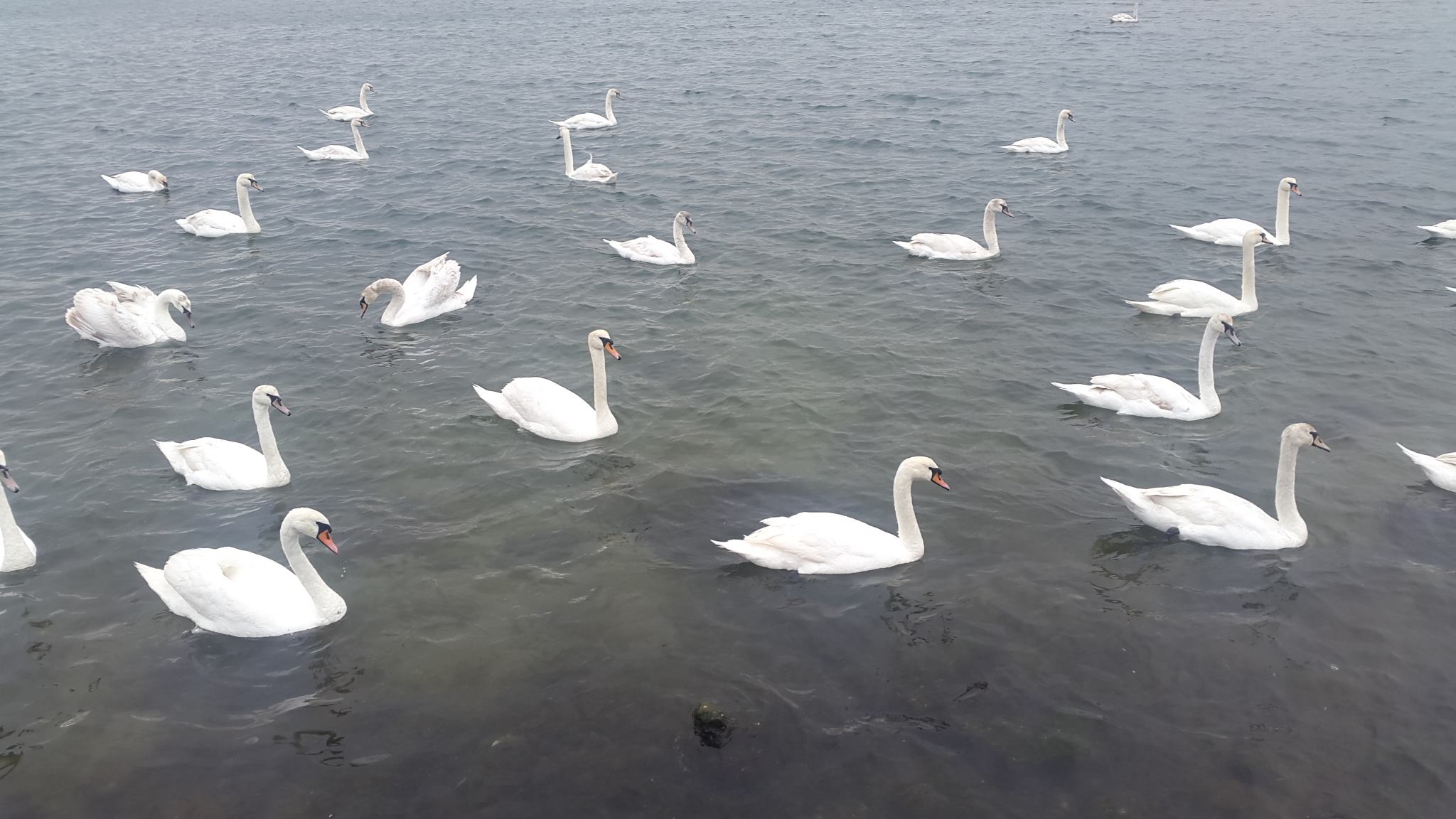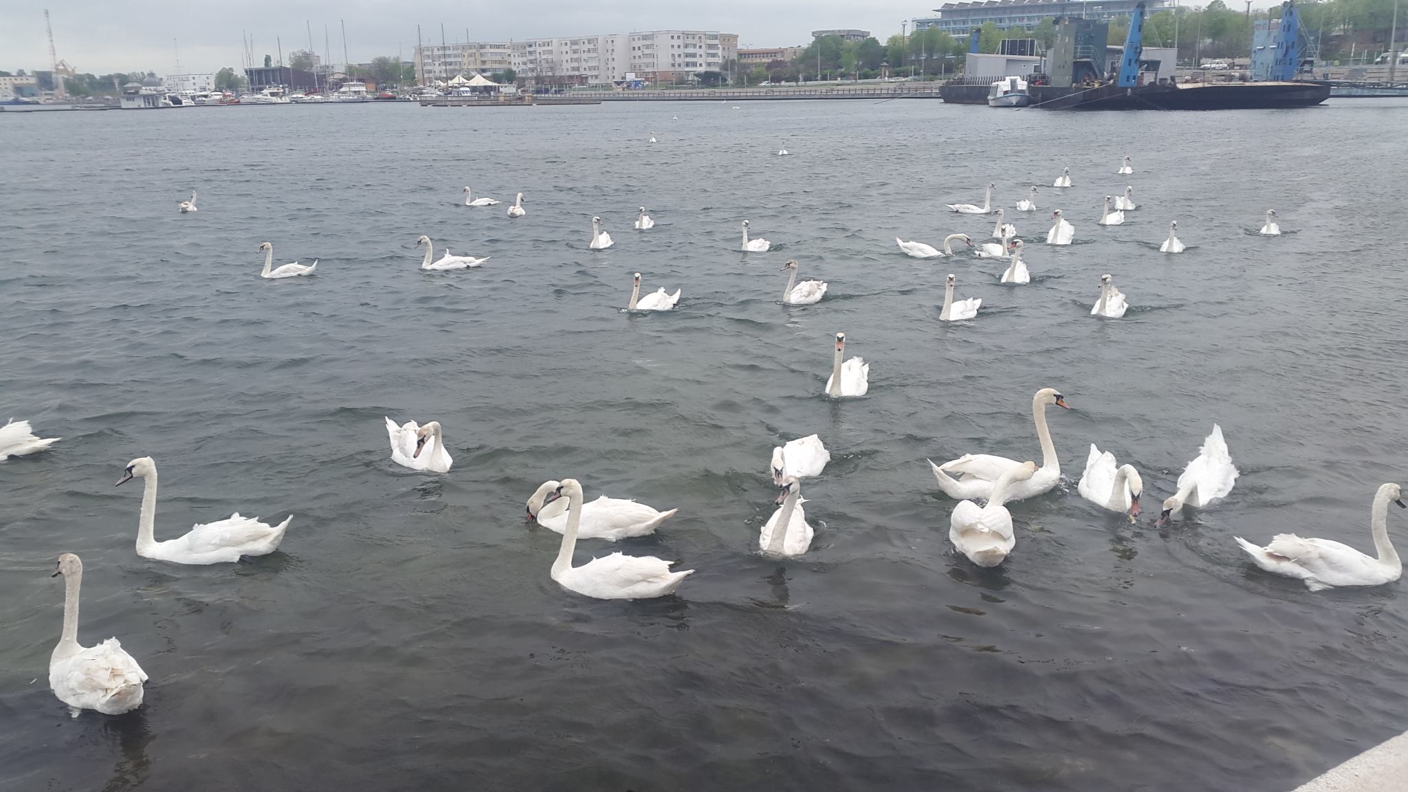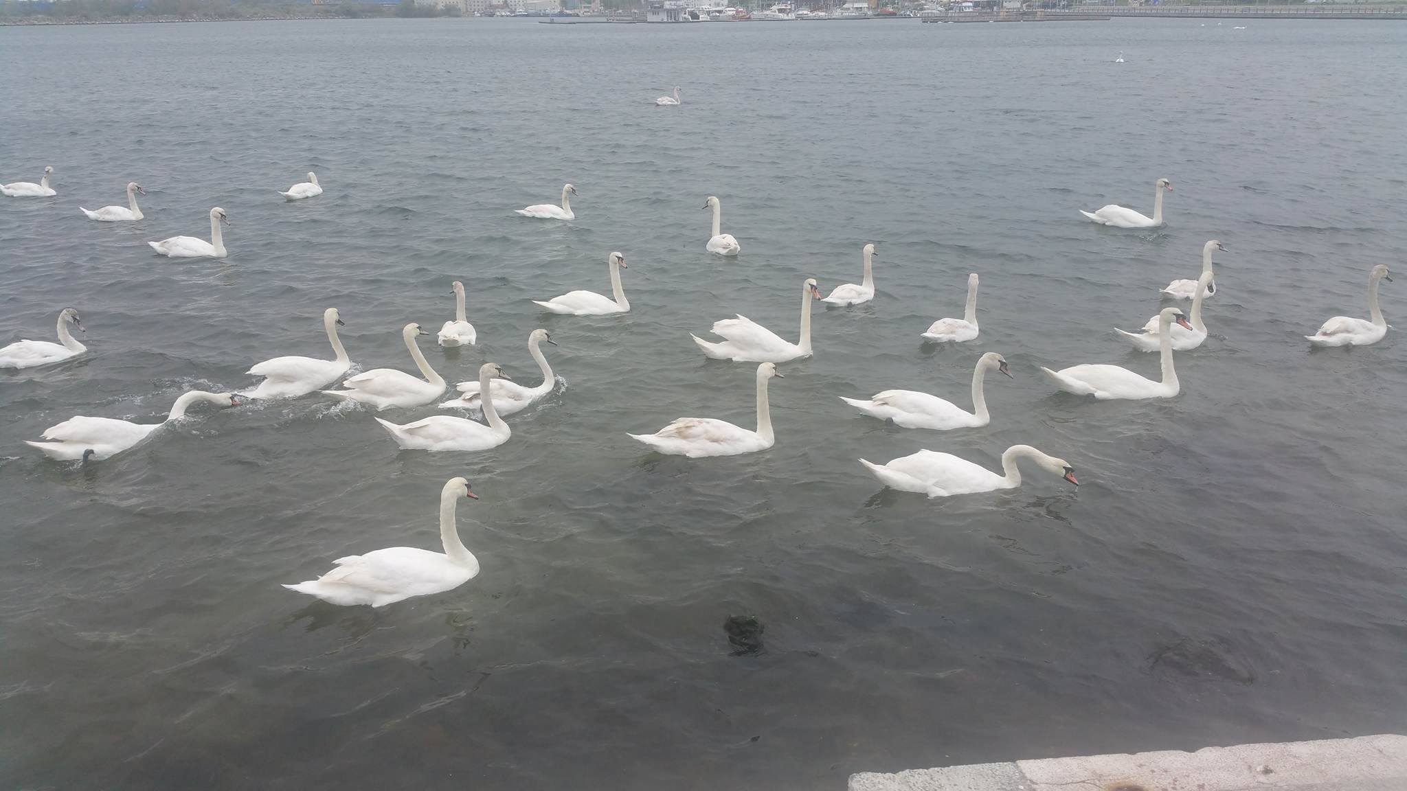 Vremea nefavorabilă de afară nu pare să afecteze stolul de lebede ce a decis, în urmă cu mai bine de 10 ani de zile să poposească în portul turistic Mangalia.