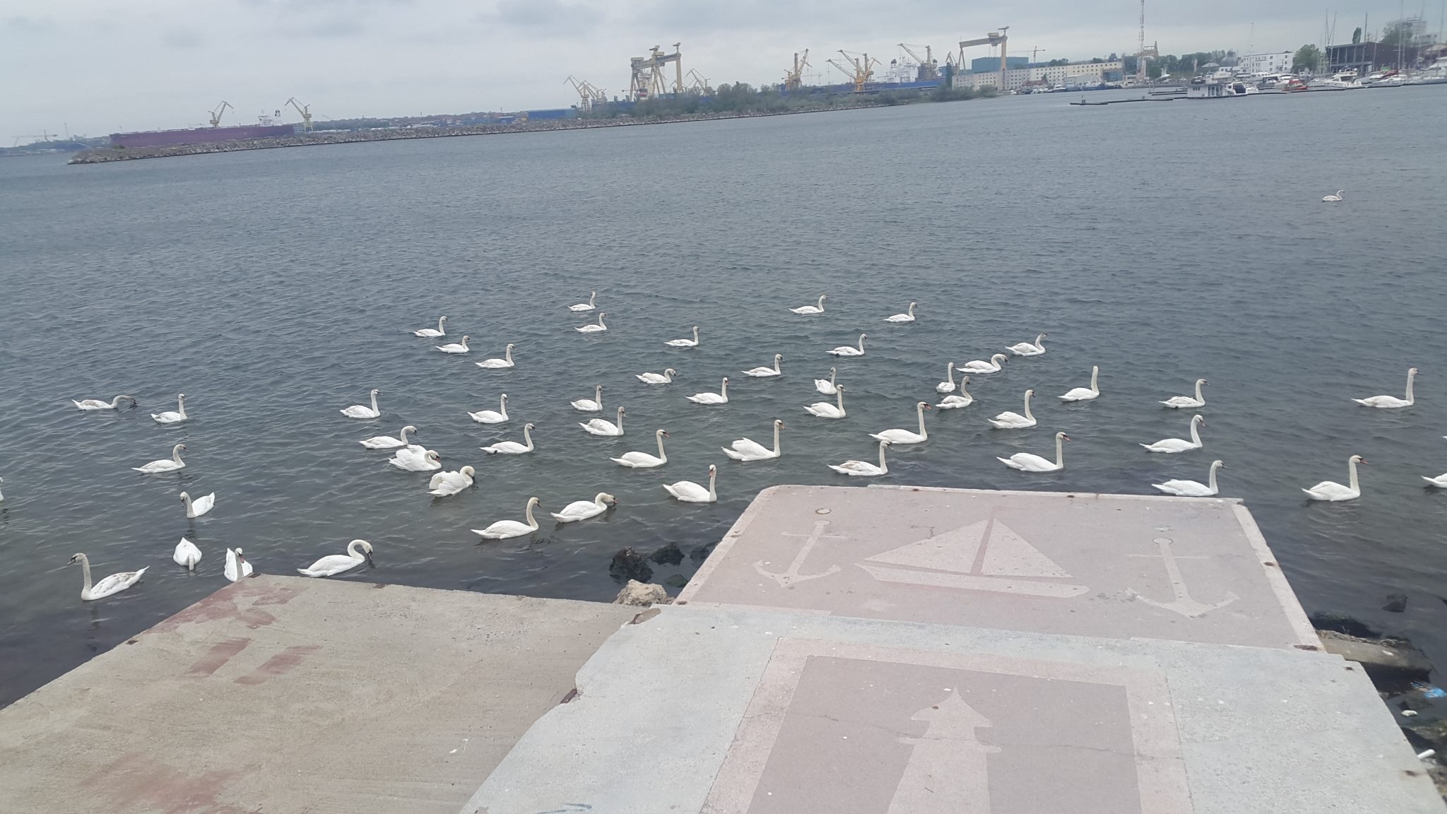 Acestea sunt hrănite de locuitori și turiști, devenind un punct de atracție în plus pentru portul Mangalia.