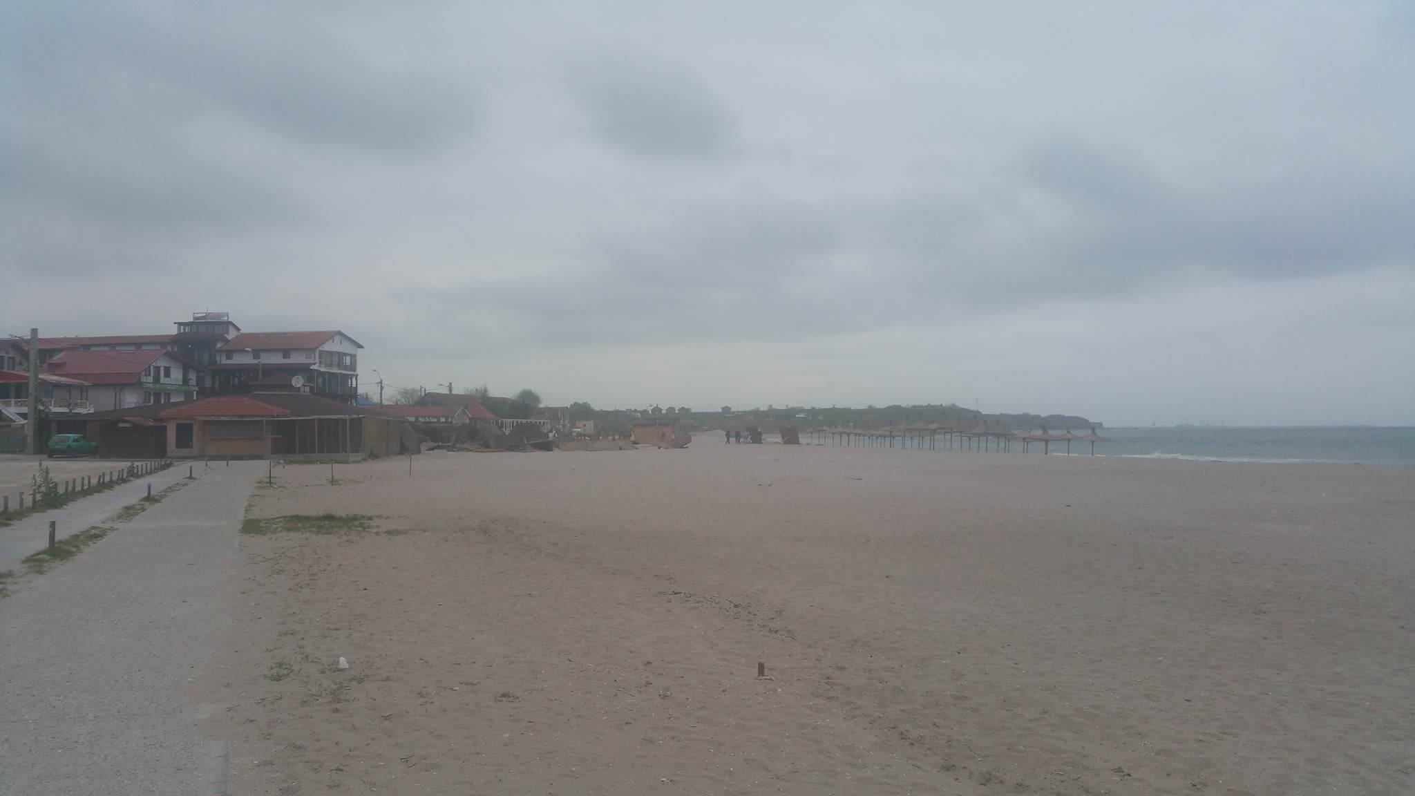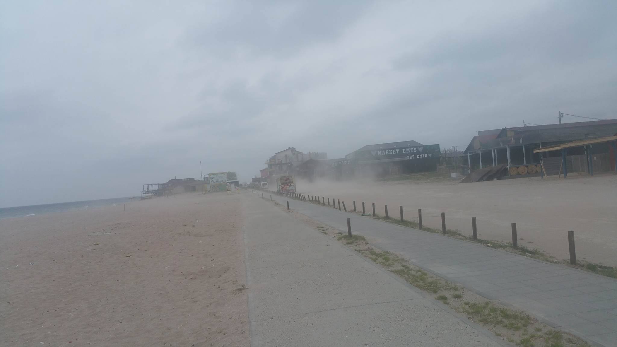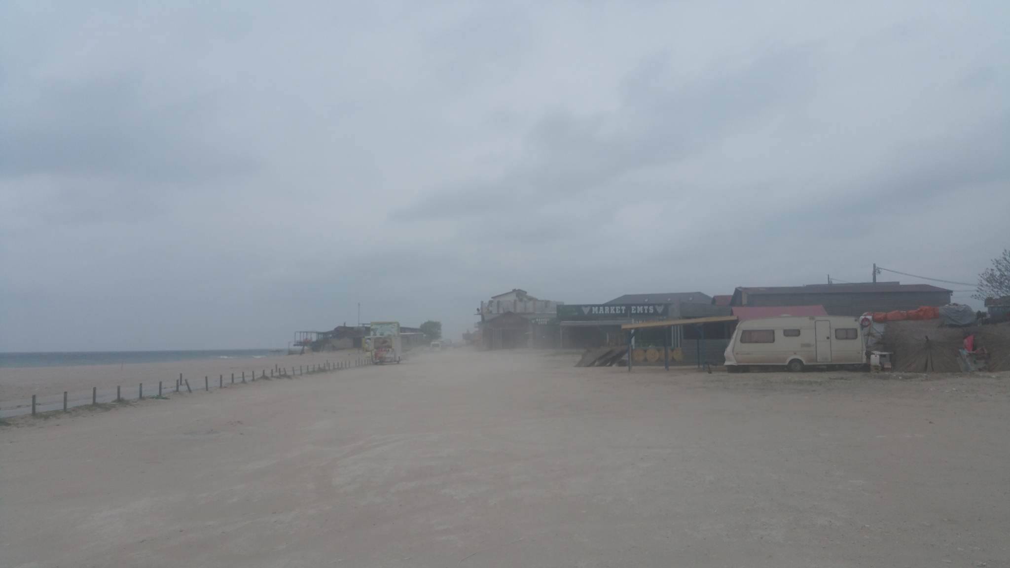 Muncitorii, zgribuliți, se luptă cu adevărate furtuni de nisip și încearcă să pună în ordine unitățile de alimentație și cazare în așteptarea turiștilor pentru minivacanța de 1 mai.