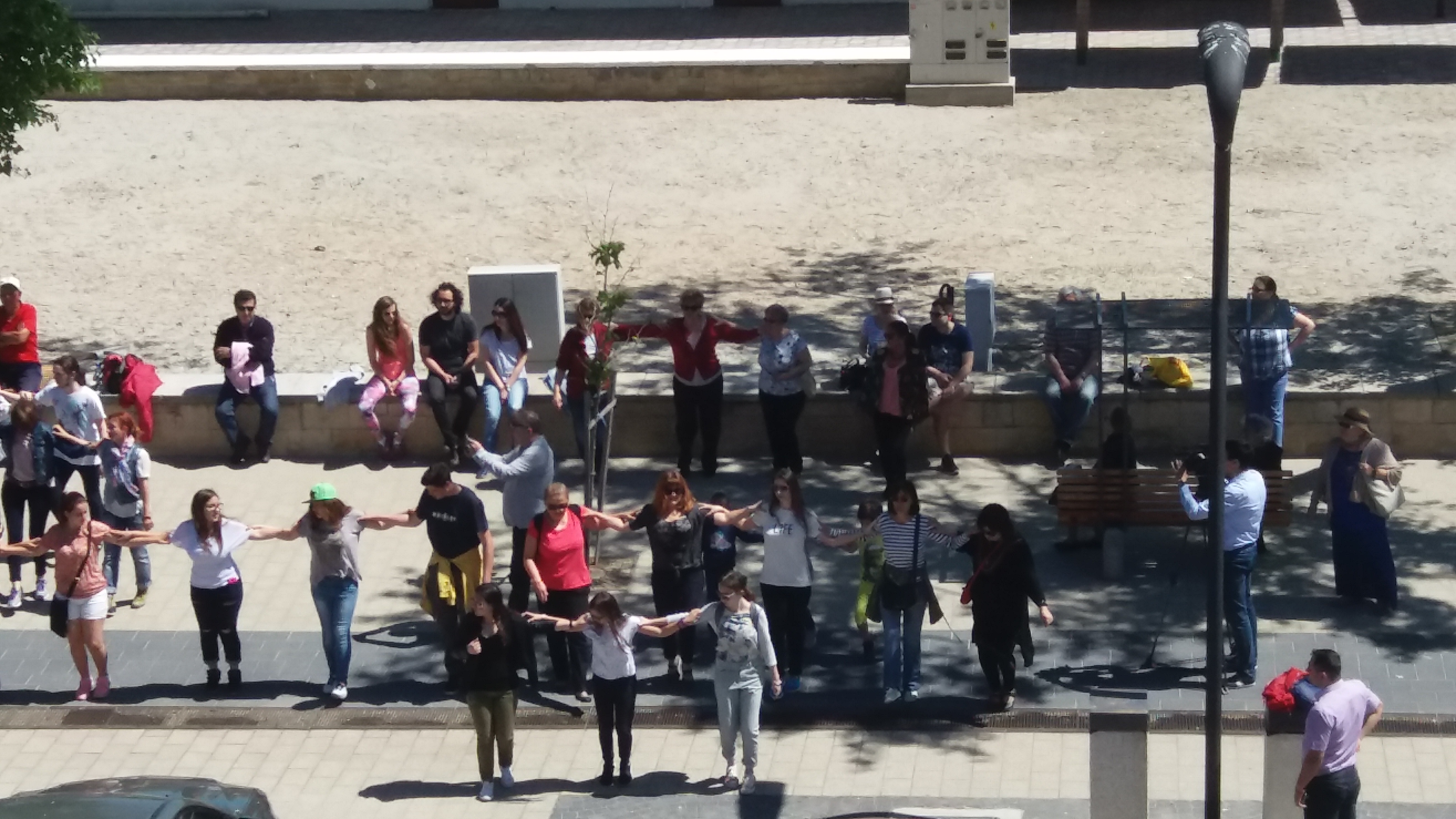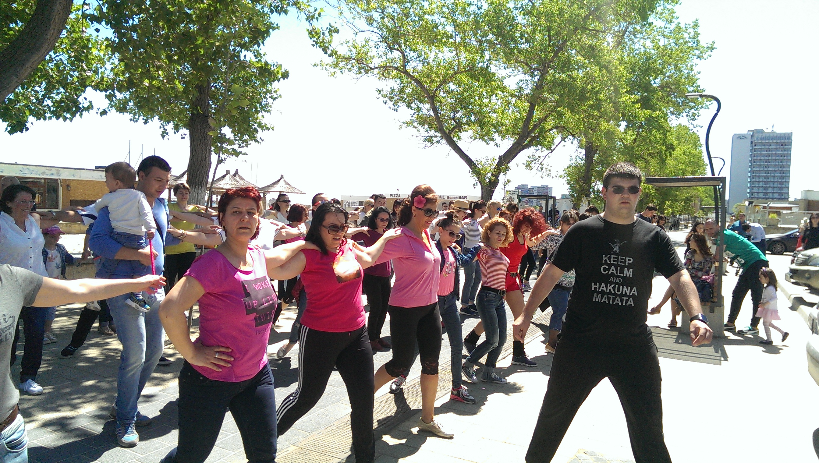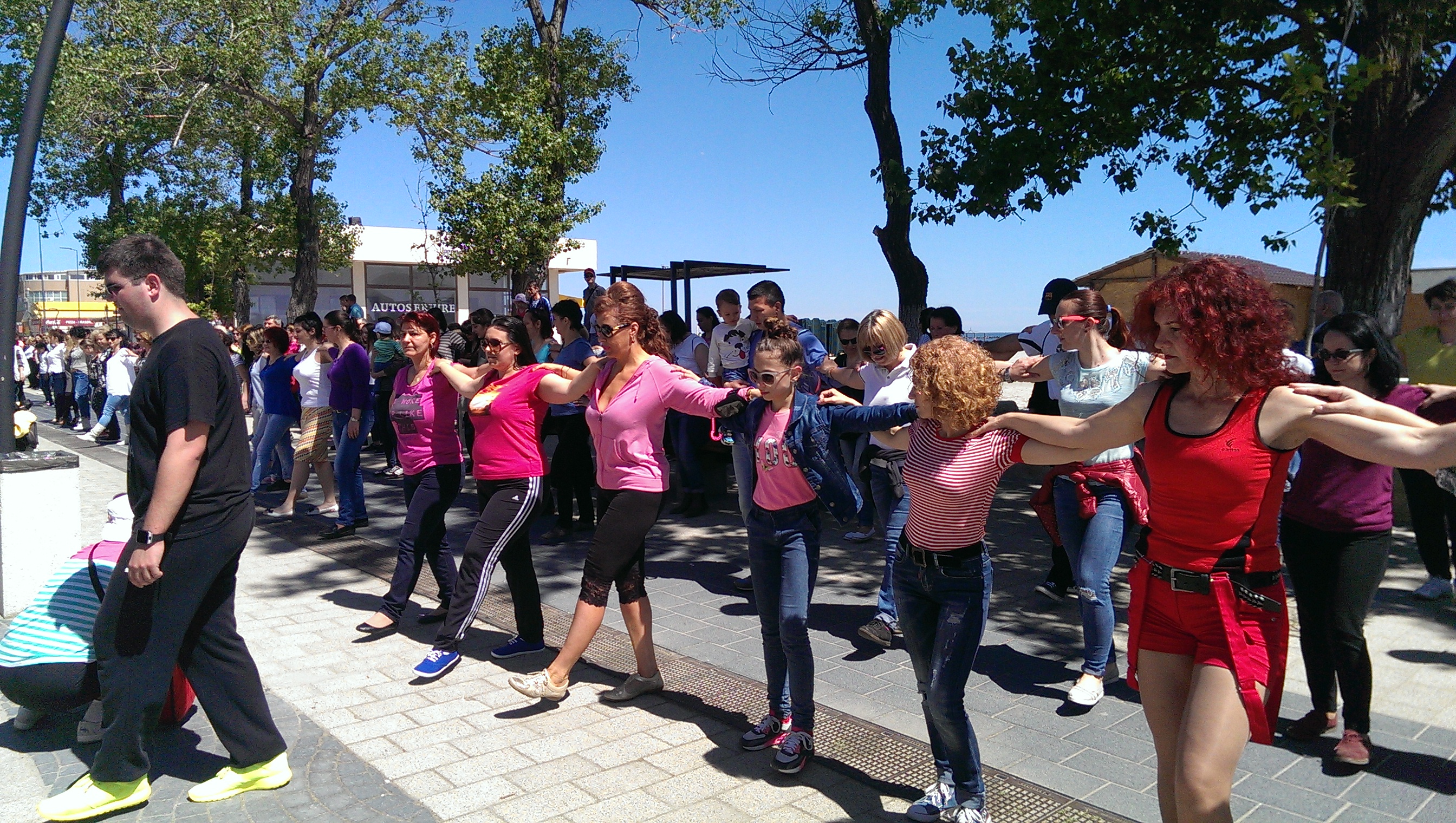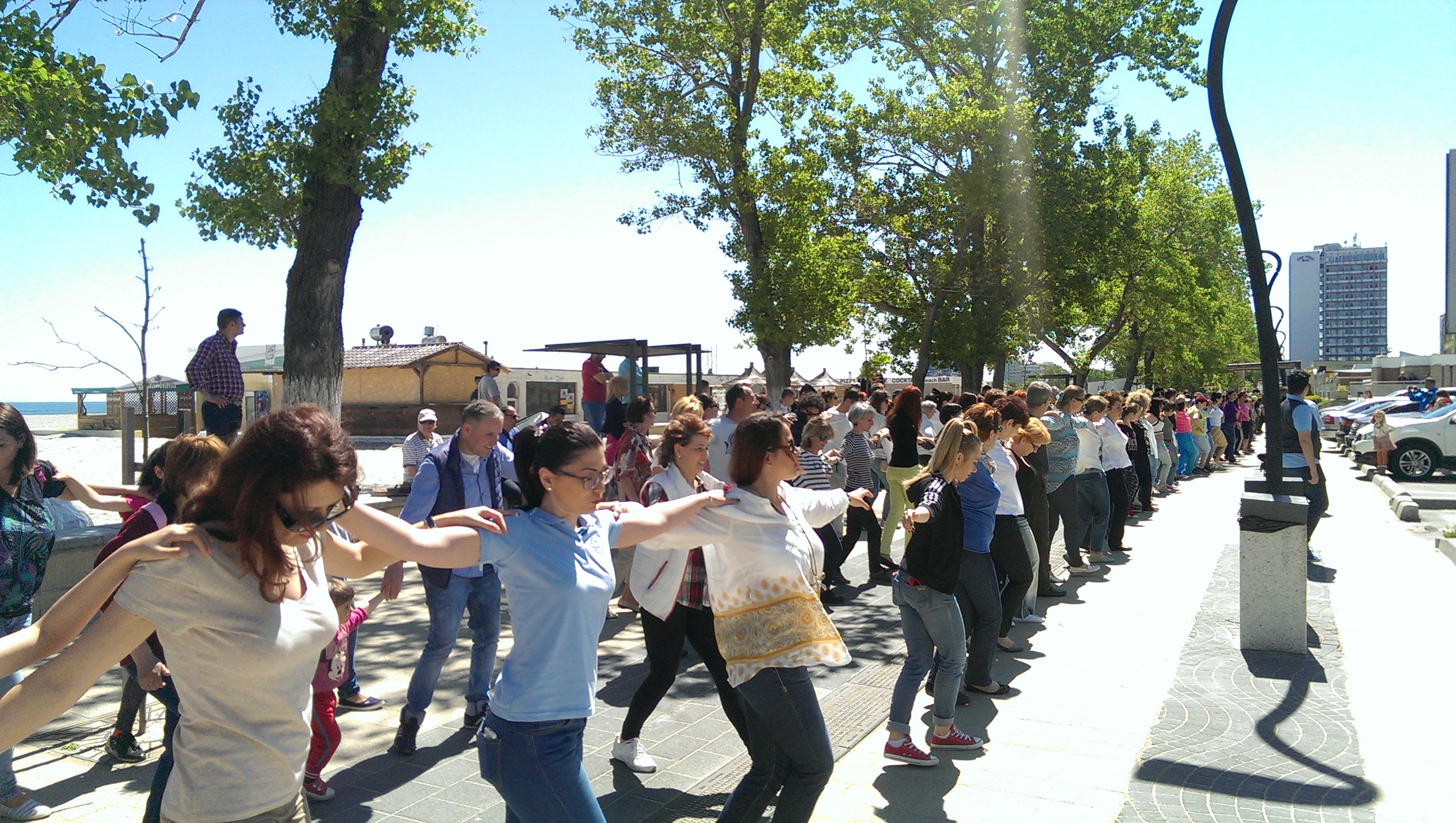 Repetiţia pentru eveniment se desfăşoară chiar în acest moment (ora 12.00) pe faleza din faţa sediului Radio Constanţa, unde, sub îndrumarea instructorului de dans Teodora Pârlea, coordonatorul Ansamblului Elpis, sute de voluntari, de toate vârstele învaţă paşii şi coregrafia.